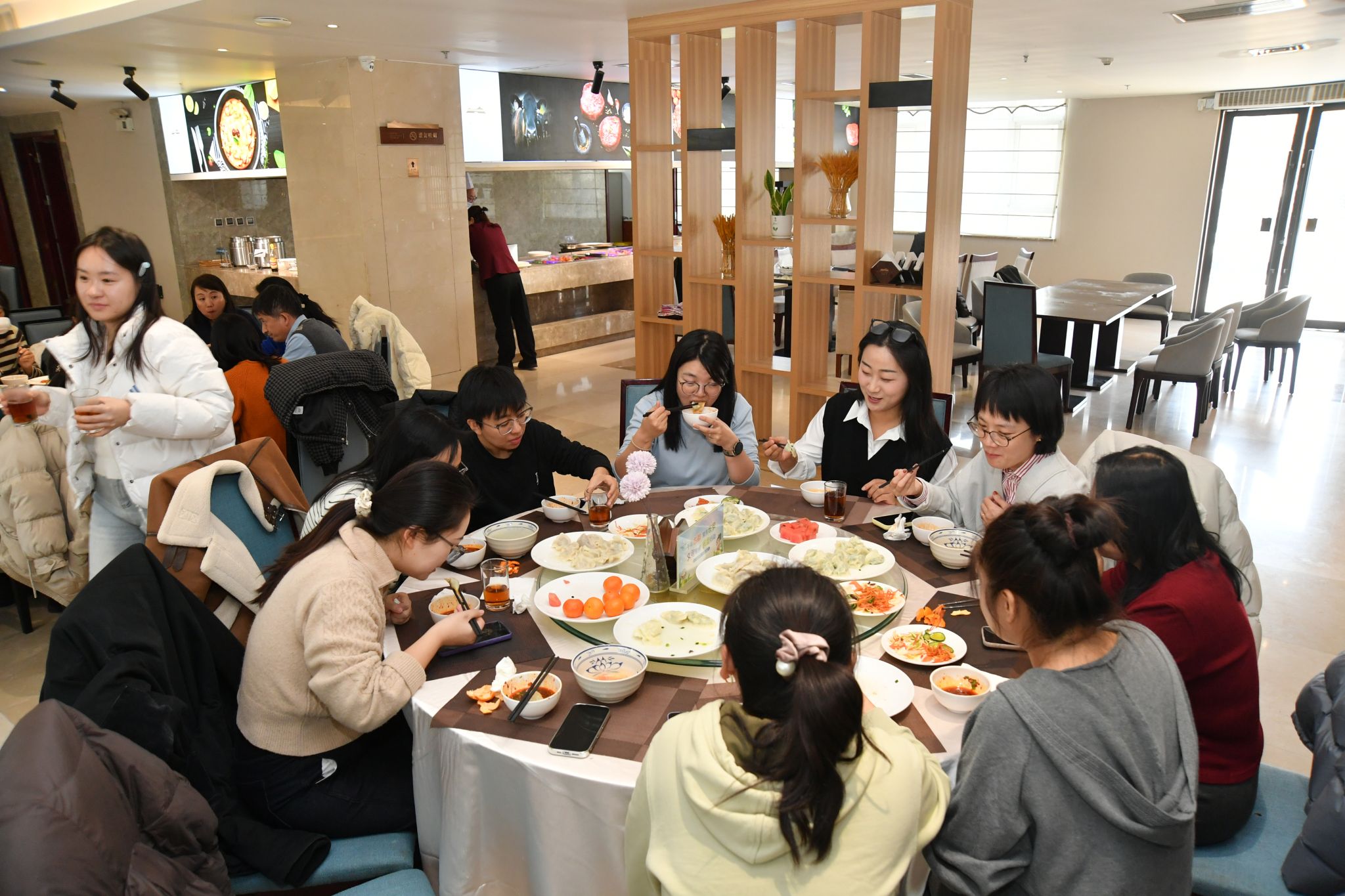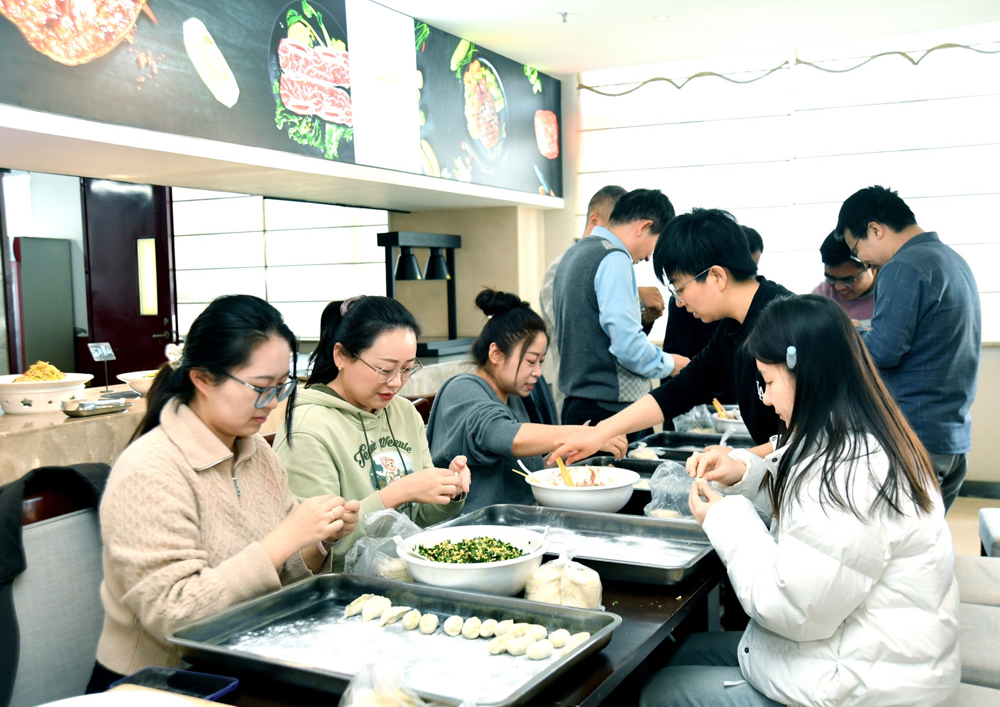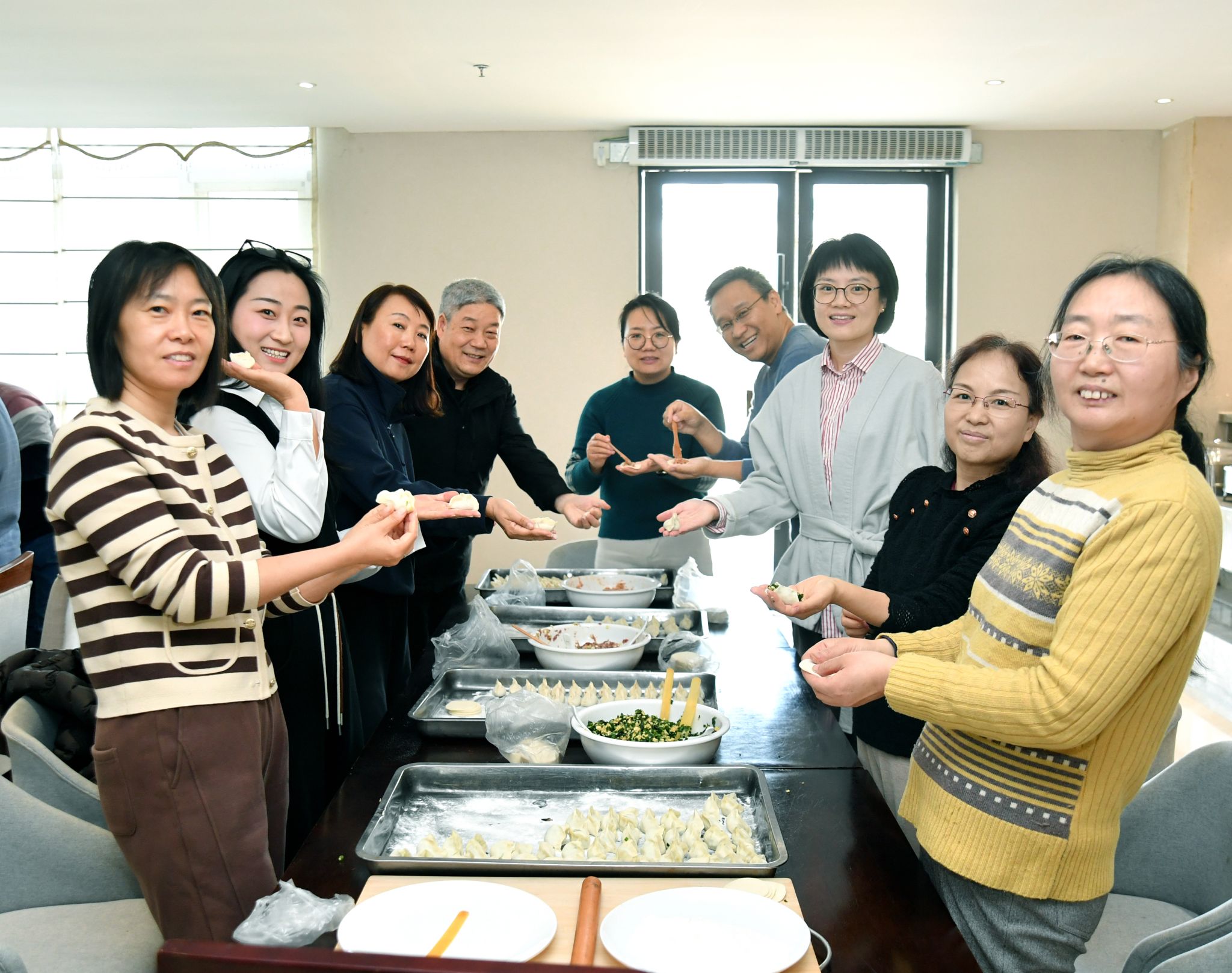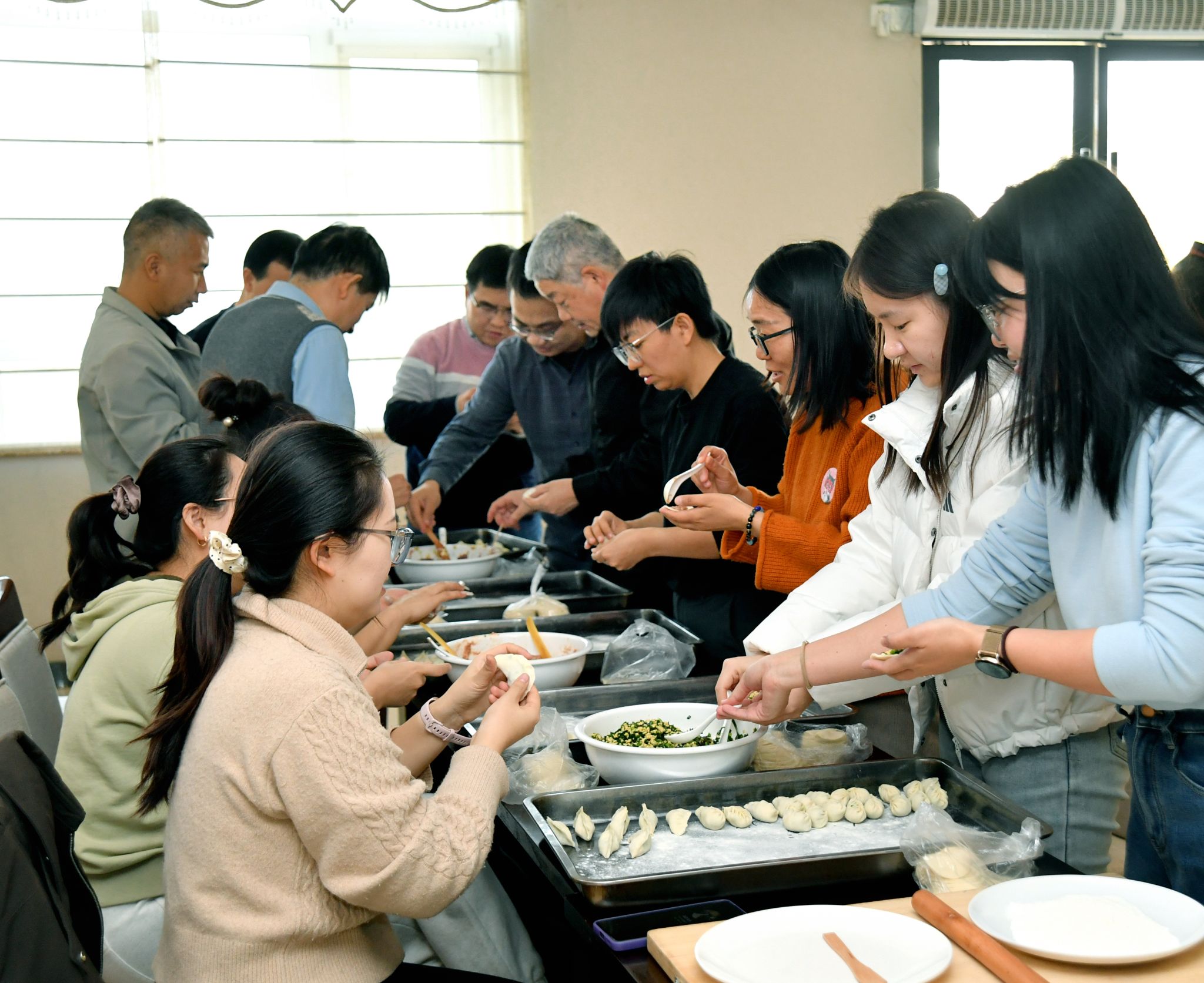 冬至寒意浓,人间温情暖。为进一步传承中华优秀传统文化,增强学院的凝聚力与向心力,12月19日冬至佳节来临之际,金沙娱乐场 工会在长安校区南山苑餐厅精心组织了“情暖冬至·聚力九章”包饺子活动。学院党委书记王莉、副院长郭千桥、工会主席佘红伟以及近30名教职工欢聚一堂,在欢声笑语中共同体验包饺子的乐趣,感受传统节日的独特魅力。
