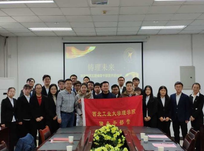 随后,由学员代表曹云雷发言,他首先对理学院各位领导老师、研会各位师兄师姐的认可与支持表达了感谢,他说道自己通过亲身参与学校、学院组织的各项活动,见证了各位老师、师兄师姐的奉献精神与辛勤付出,表示会将这种服务学生、奉献自己的精神传承下去,希望每一位学员都能在储备干部营中展示自我,锻炼各项能力。接着,由储备干部营营长段利兵老师向理学院第五期储备干部营授旗,班长曹云雷带领全体学员宣誓,这表明了第五期学员开拓进取的决心和态度。