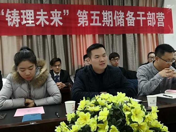 接着,副营长姚东东老师表达了对所有学员的欢迎,希望学员们积极参加培训、虚心学习,锻炼自己的实践能力,在储备干部营能有所收获,同时他要求学员们明确自己所承担的责任,希望学员们有大局观,勇于担当,不断增强服务意识,能够处理好工作和学习、生活之间的关系,提升自己的综合能力。然后由理学院研会主席毛伟男代表理学院研会宣读了储备干部营的学员名单。第五期储备干部营班主任糜晓磊提出了期许,他希望学员们虚心学习,进一步提升业务能力,通过储备干部营的培训和历练能够具有较强的担当意识,主动承担研会、学院的各项学生工作。此外,他还介绍了储备干部营的培训内容,希望学员们能够在一系列的培训中锻炼自己的统筹管理和组织协调能力。