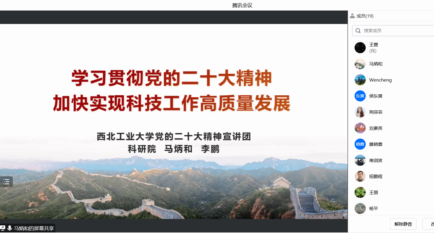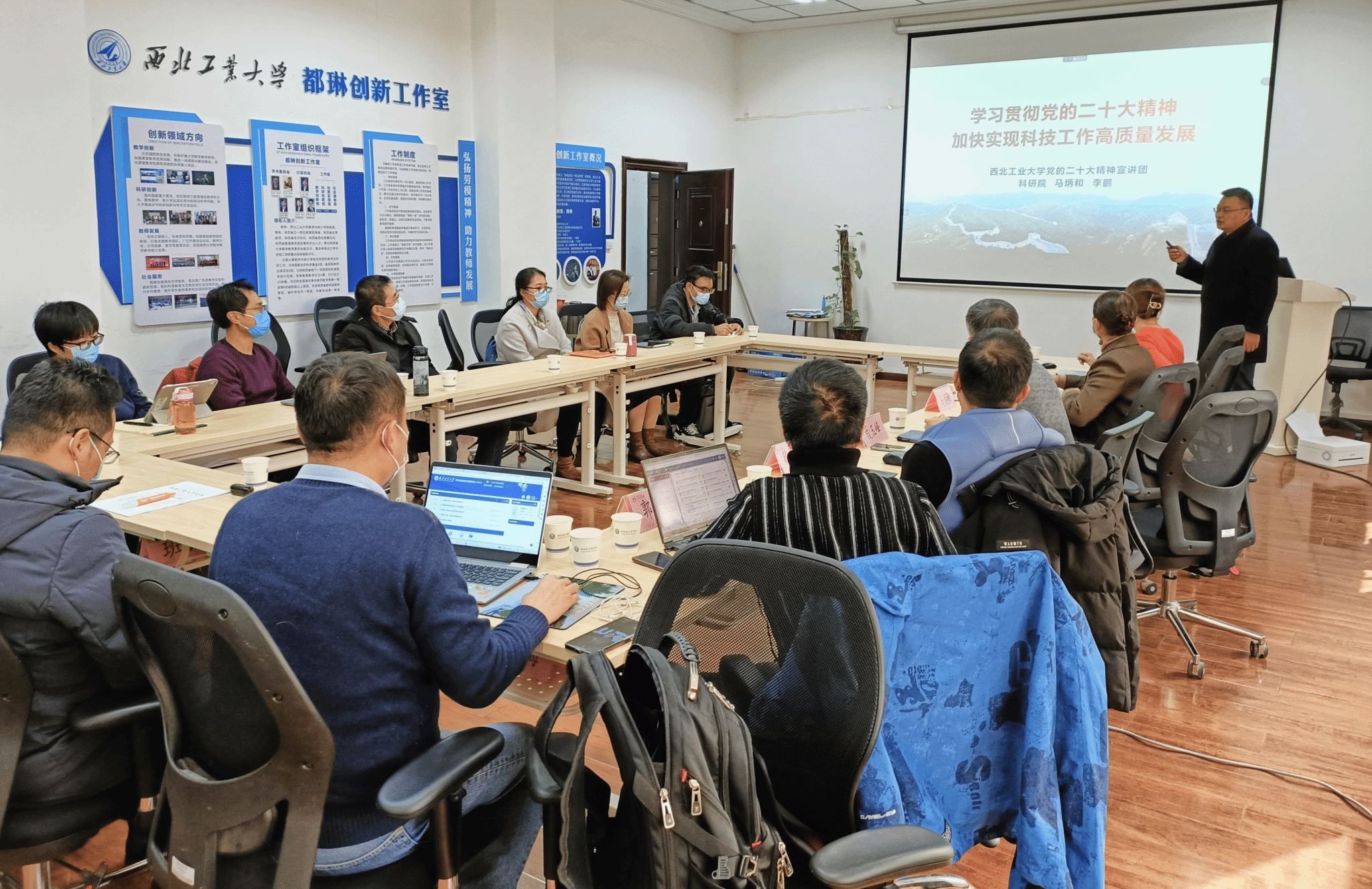 马炳和以“学习贯彻二十大精神,加快实现学校科技工作高质量发展”为主题,深入介绍了“党的二十大的重要意义”、“党的二十大的主题”、“过去五年的工作和新时代十年伟大变革的重大意义”等八个方面的内容。他强调了科技创新在党的二十大报告中的重要意义,通过对学校近五年科技工作重要业绩的梳理,围绕《西北工业大学科技工作高质量发展行动计划》的9大方面30条目标任务,指出学校今后开展科技工作的重点与目标,也对学院今后如何顺应国家战略发展、服务国家方针政策给出了指导性意见。他希望金沙娱乐场 教师有信心、有意志、有能力登上科学高峰,肩负起历史责任,坚持服务“四个面向”,不断向科学技术广度和深度进军。