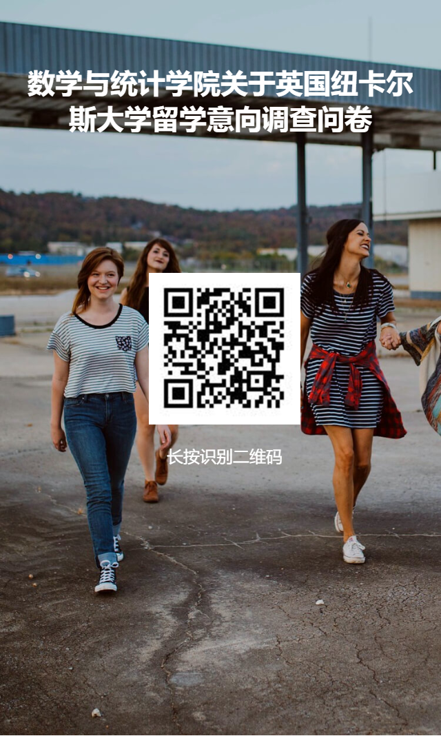 您好!为进一步加强学院国际交流与合作,拓宽学生国际化留学渠道,金沙娱乐场 现准备与英国纽卡尔斯大学数学统计与物理学院联合开展“1+1+1”双硕士项目。“1+1+1”双硕士项目是指在西工大完成研一和研三学业,在纽卡尔斯大学完成研二学业,顺利毕业后即可获得双方硕士学位。为顺利推进此项目的实施,现特制该调查问卷,了解广大学生对出国留学的意向及需求。