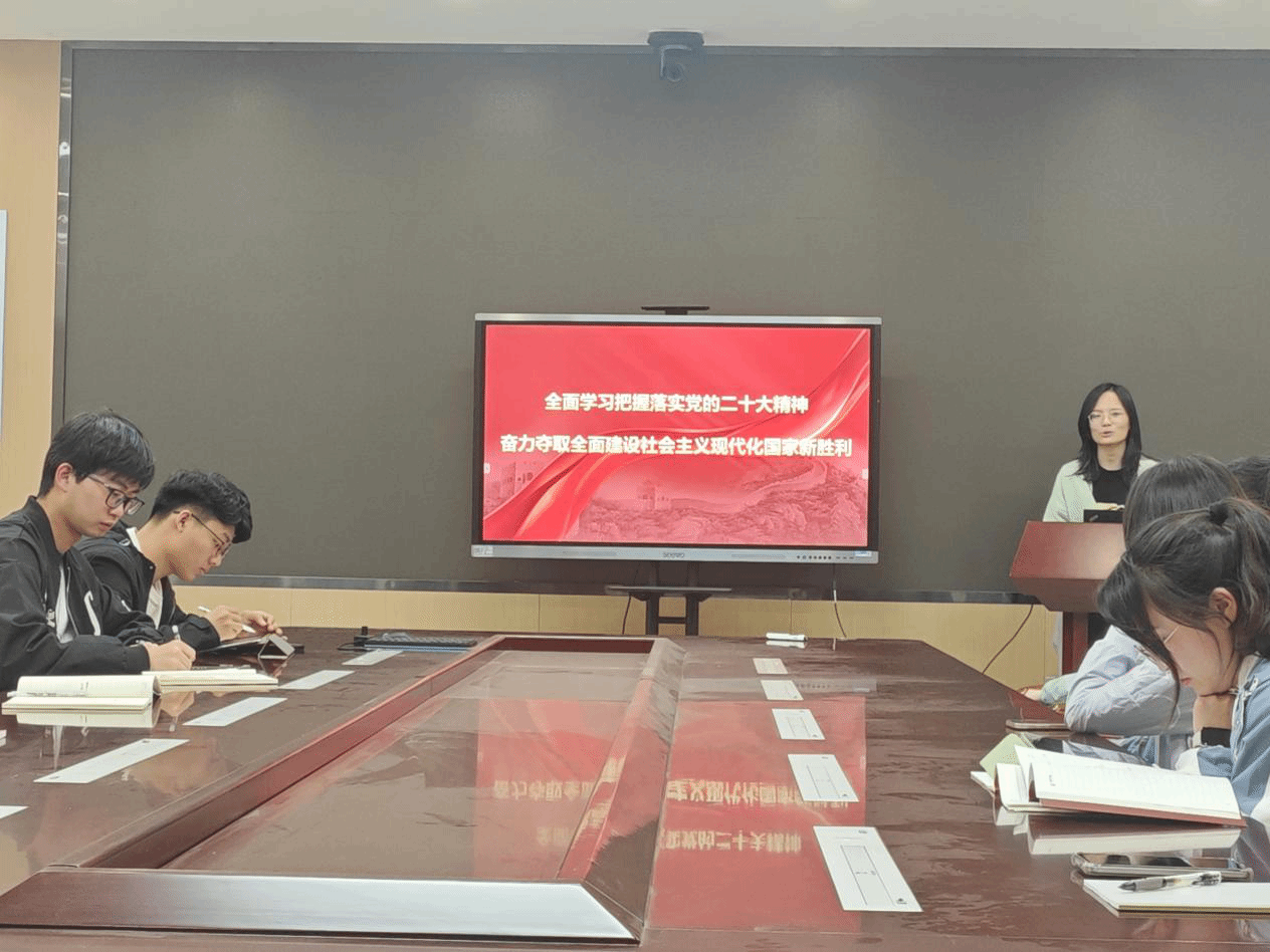 为扎实开展习近平新时代中国特色社会主义思想主题教育,持续深入学习党的二十大精神,进一步抓好学生党员学习教育,4月27日,金沙娱乐场 在理学院201会议室组织开展党的二十大精神宣讲活动。2021级硕士生第二党支部、2021级硕士生第三党支部和博士生第三党支部全体党员参与本次会议,会议由学工秘书曹立帆主持。