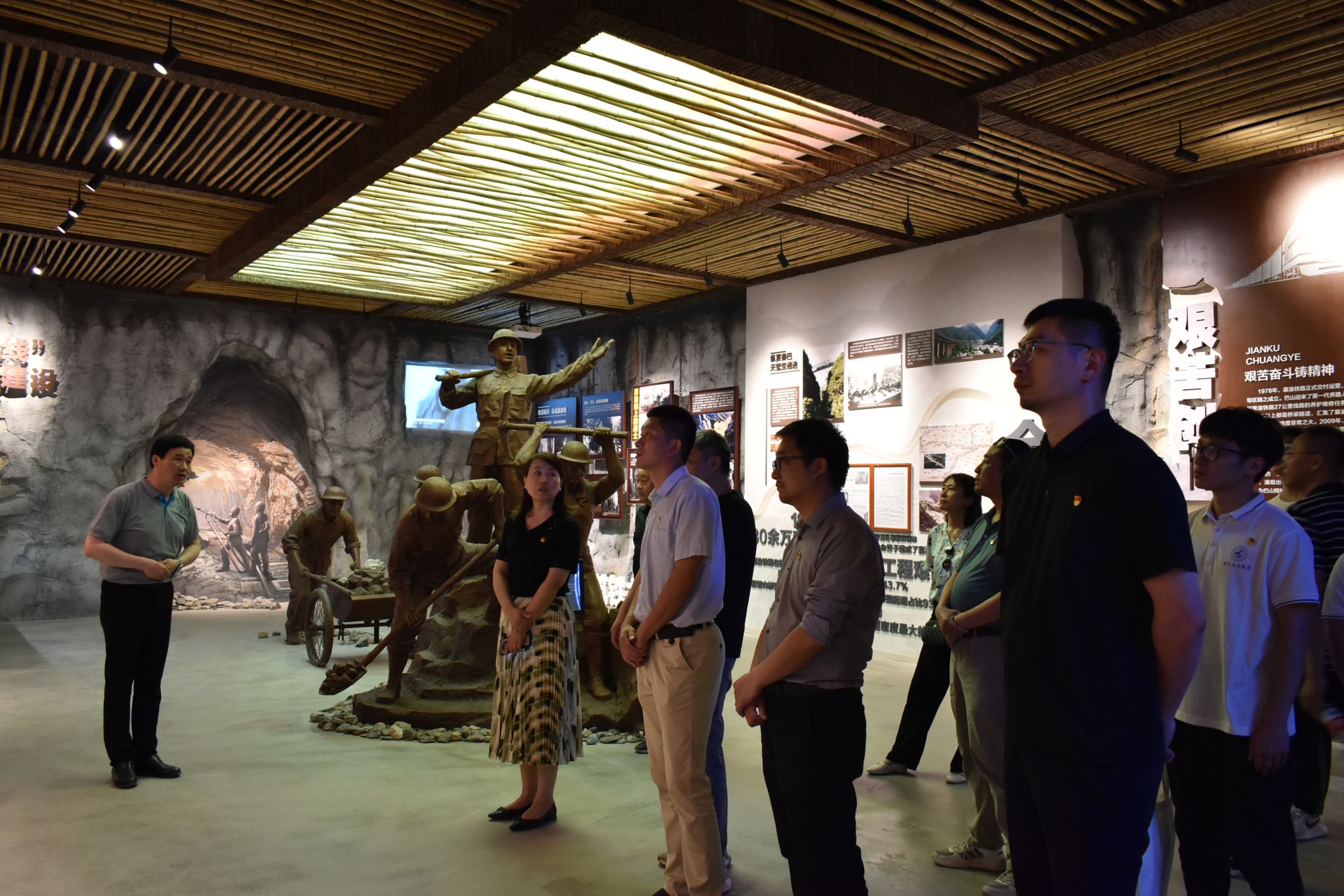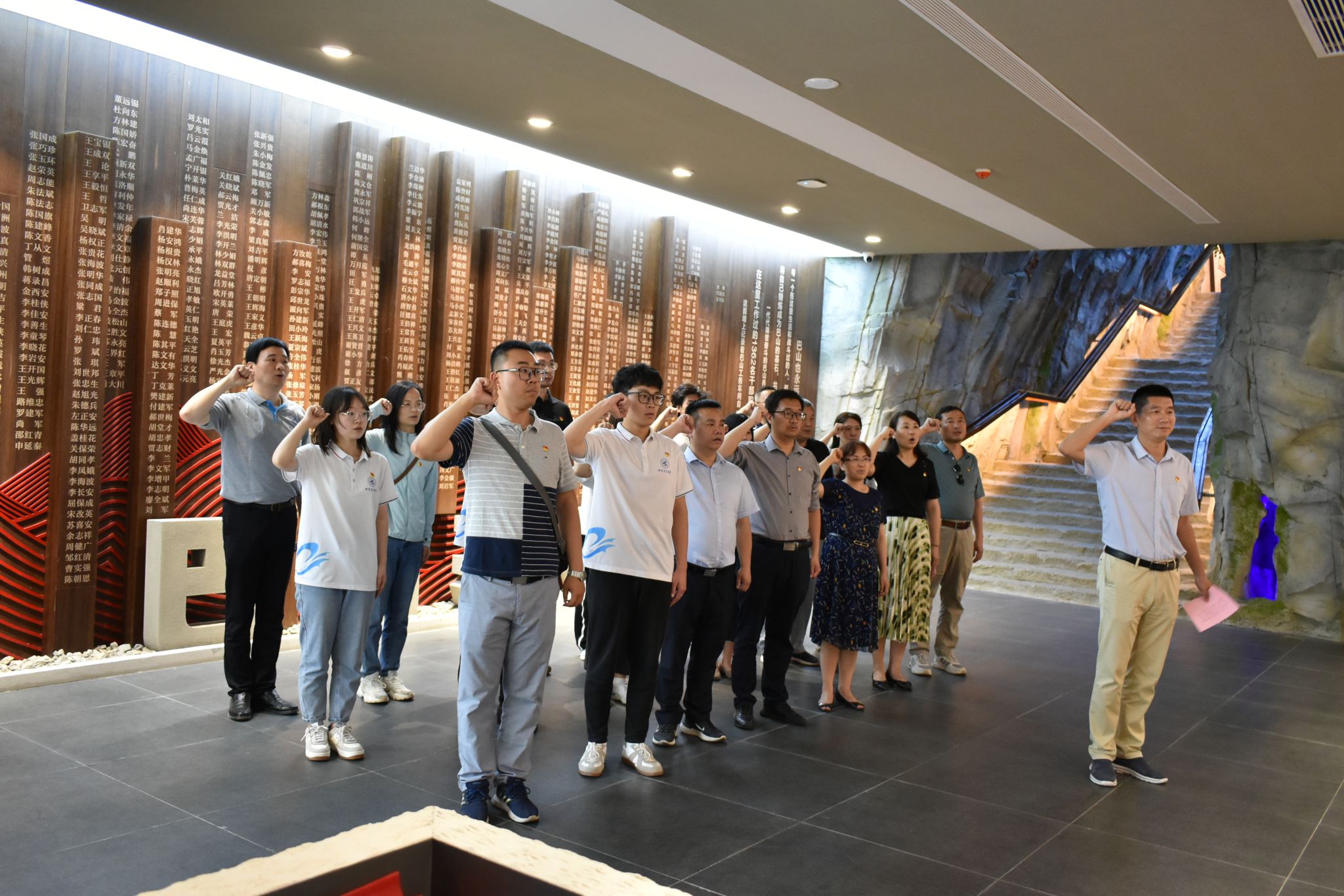 会后,两学院师生一起前往巴山精神教育基地参观学习。在庆晓勇同志深情并茂的讲解下,大家陆续参观了巴山精神陈列馆、劳模和工匠人才创新工作室、巴山职工文化创业基地、党员活动阵地、巴山精神报告厅等,全面了解了“巴山精神”产生、发展、传承的全过程。每到一处,大家一边仔细倾听讲解,一边驻足观看一幅幅图文资料、一件件珍贵实物,聆听一个个真实故事,思绪已然跟着讲解员穿越到建设巴山铁路的峥嵘岁月,亲身感受到了一代代巴山铁路人的创造与奉献、坚守与继承,时刻被“巴山精神”蕴含的安心山区的奉献精神、艰苦奋斗的创业精神、开拓进取的拼搏精神、坚定乐观的自强精神所激励、所感动。在场同志们重温入党誓词并纷纷表示,要继承和弘扬巴山精神,不断增强理想信念,立足岗位,不忘初心、牢记使命,为党育人、为国育才,为实现中华民族伟大复兴的中国梦奉献青春和力量。(文:班凯、刘凯/图:南剑波/审核:王莉、李晗)