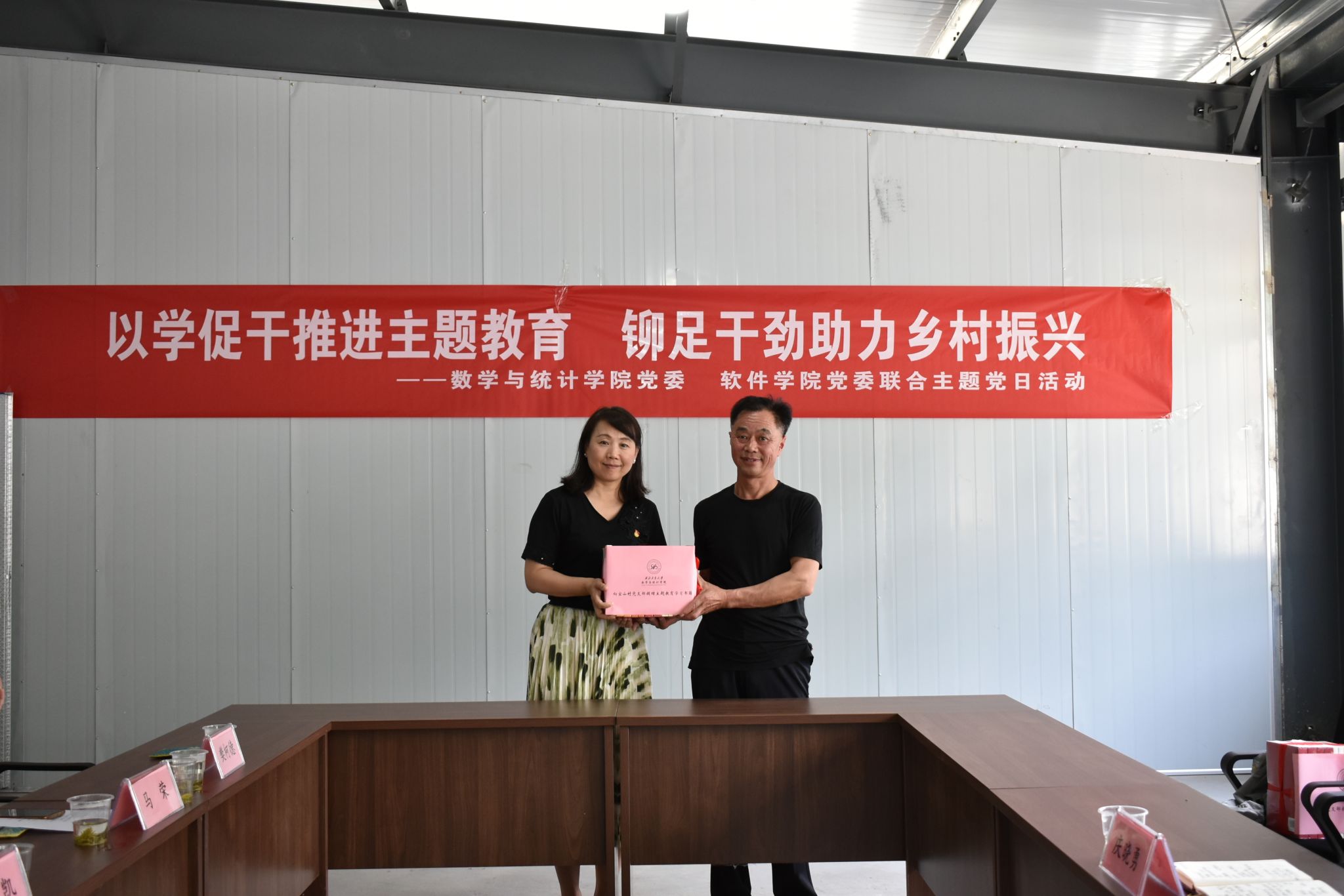 在茶厂二楼会议室召开的座谈会上,巴山镇党委委员、武装部部长李华,宝山村第一书记王峰分别就镇情、村情,我校“两联一包”定点帮扶工作开展情况进行了介绍。在场师生纷纷对宝山村在学校相关政策积极支持帮扶下,各方面工作取得的成果致以热烈的掌声。金沙娱乐场 党委书记王莉、软件学院党委副书记(主持工作)李晗分别代表学院党委向宝山村捐赠了相关理论学习资料和党建书籍,并在总结讲话中分别对驻村帮扶工作取得的成绩给予高度评价和充分肯定,对镇村干部的坚守山村勤恳工作表示崇高敬意。他们均表示学院未来将在进一步科技助力产业发展、引导师生员工拓展消费帮扶途径和党建共建共育支持上加大力度,坚持以党建为引领,助力宝山村乡村振兴再上新台阶。