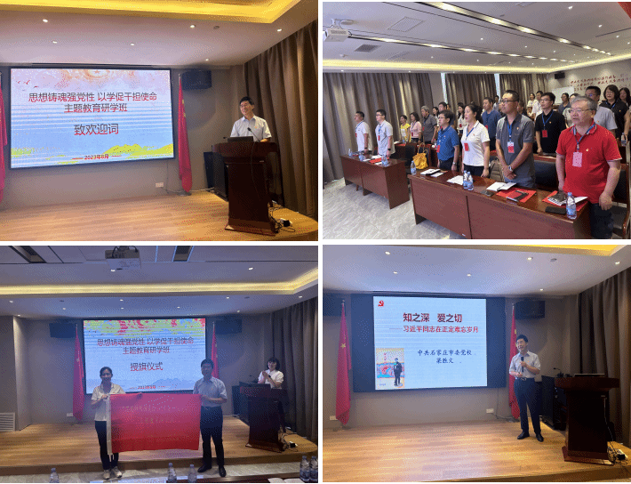 8月21日下午,在教学基地举行专题培训开班仪式,物理科学与技术学院党委书记晁小荣作动员讲话,他表示全体学员要珍惜学习机会,在新时代的赶考之路中建功立业。通过学习,进一步解放思想、统一认识,深刻领悟西柏坡精神的丰富内涵,这次重点围绕“西柏坡精神”是什么、为什么要学习“西柏坡精神”、如何践行“西柏坡精神”三大问题进行学习,通过重温革命历史,不断锤炼党性,提高能力,走好新时代赶考路,为开创教育工作新局面再建新功。随后,中共石家庄市委党校公务员能力建设研究部主任梁胜文教授致欢迎辞,并向培训班授旗,生命学院党委书记牟蕾代表培训班全体学员接旗。最后,梁胜文教授讲授了《知之深 爱之切——学习习近平在正定的岁月》专题党课,梁教授的讲解思想深邃、深入浅出、案例丰富,具有很强的理论性和指导性。全体学员跟随梁教授的讲解,追寻习近平总书记正定足迹,探寻习近平总书记施政思想的起源和初心足迹,使全体党员进一步深化了对习近平新时代中国特色社会主义思想丰富内涵及其形成脉络的认识。