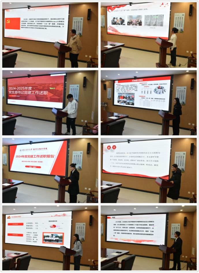 随后,4个教职工党支部书记及16个学生党支部书记依次述职,参会评委根据述职情况进行现场打分。
