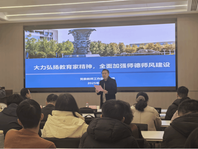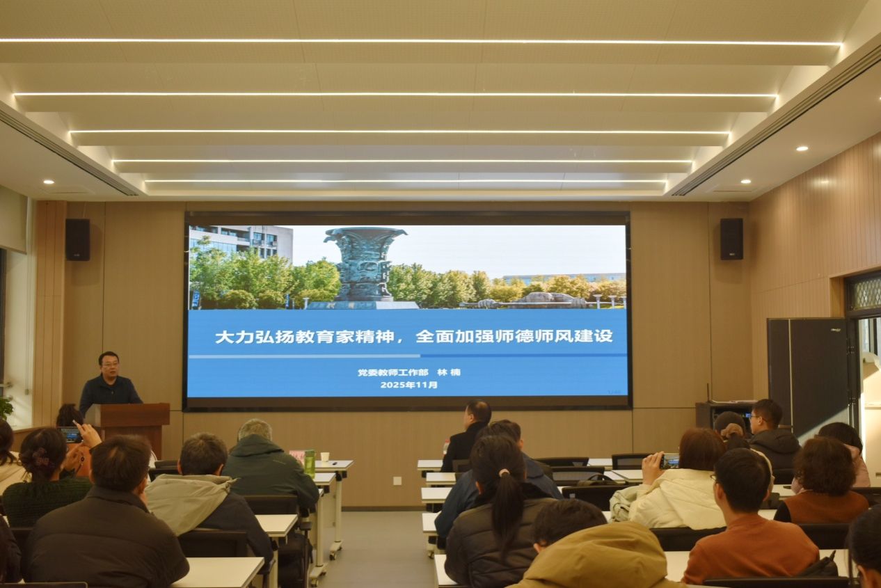 为深入学习贯彻习近平总书记关于教育的重要论述,落实立德树人根本任务,进一步团结凝聚学院广大教师以更加奋发有为的精神状态投身教育强国建设实践,大力弘扬教育家精神,为学校实现“天下工大、世界三航”远景目标注入强劲动力。12月4日,金沙娱乐场 邀请校党委教师工作部副部长林楠面向全体教师党员作了题为《大力弘扬教育家精神,全面加强师德师风建设》的专题报告。副院长徐根玖主持会议。