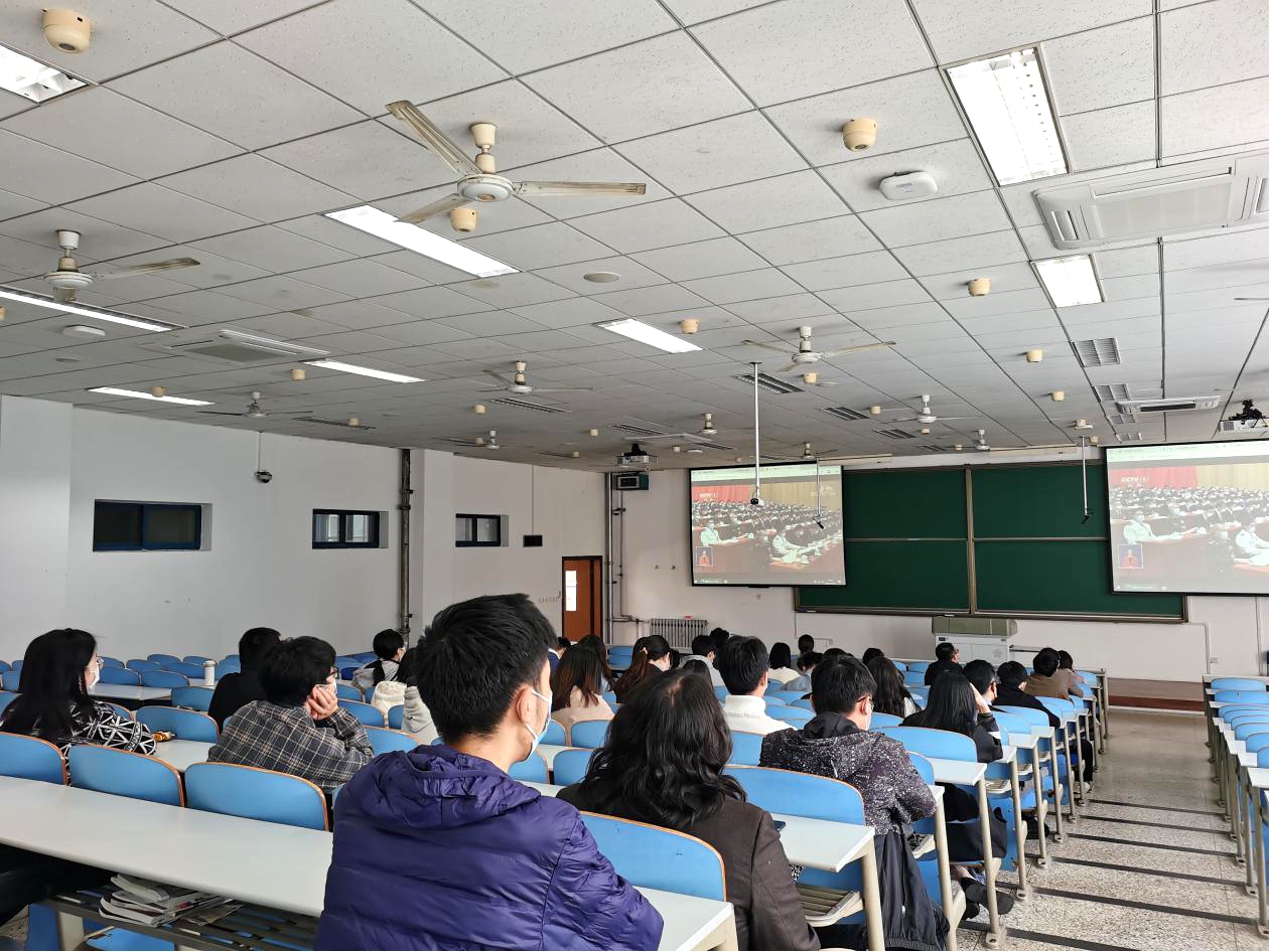 金沙娱乐场 组织学院领导班子及党委理论学习中心组成员与学生党员代表在长安校区启翔楼357会议室共同观看党的二十大开幕会,认真聆听习近平总书记向大会所作的报告,共同亲历这一庄严的时刻,第一时间学习领会大会精神。学院其他教职工党员通过线上会议共同观看党的二十大开幕会,学院全体学生党员以党支部为单位分别在报告厅、教室、会议室等地,通过电视、网络等多种形式收看开幕会盛况。