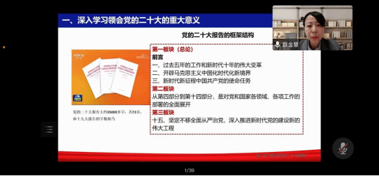 学校党的二十大宣讲团成员薛金慧老师《新时代新征程中国共产党的使命任务》专题党课
