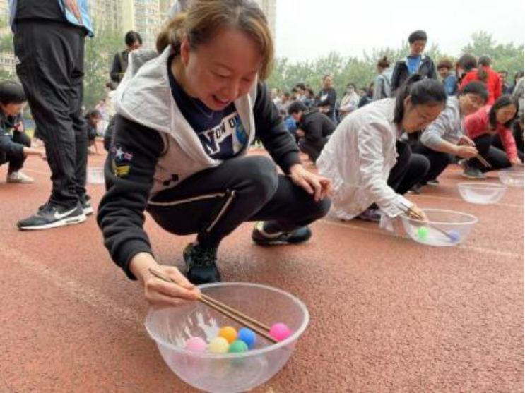 秉承着“友谊第一,比赛第二,赛出风格,赛出水平”的理念,趣味运动会在老师们的一片欢声笑语中开始了。作为运动会的第一个项目也是历年的经典项目,“旱地龙舟”受到了许多人的期待。随着裁判一声令下,老师们整齐地喊着“一二、一二”的口号,奋勇直前,龙舟如离弦的箭一般驶出了起点。