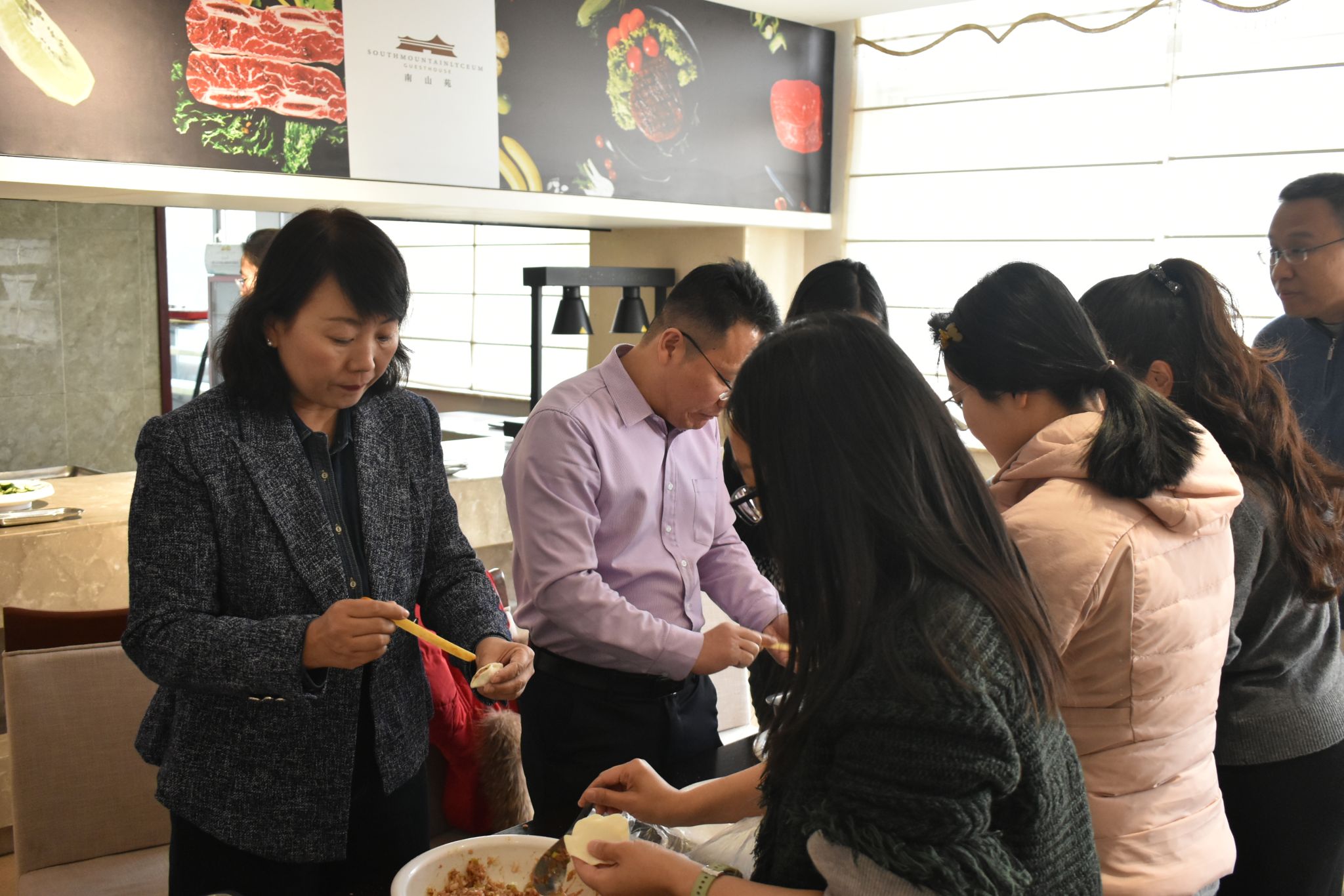 为进一步弘扬中华优秀传统文化,为即将到来的冬至佳节增添温馨与欢乐。12月20日,金沙娱乐场 工会在南山苑餐厅举办了“冬至欢聚、温暖前行”包饺子活动。党委书记王莉、副院长徐根玖、副书记张莹、工会主席佘红伟以及近30名教职工积极参与,共同体验包饺子的乐趣,感受冬日的温暖。