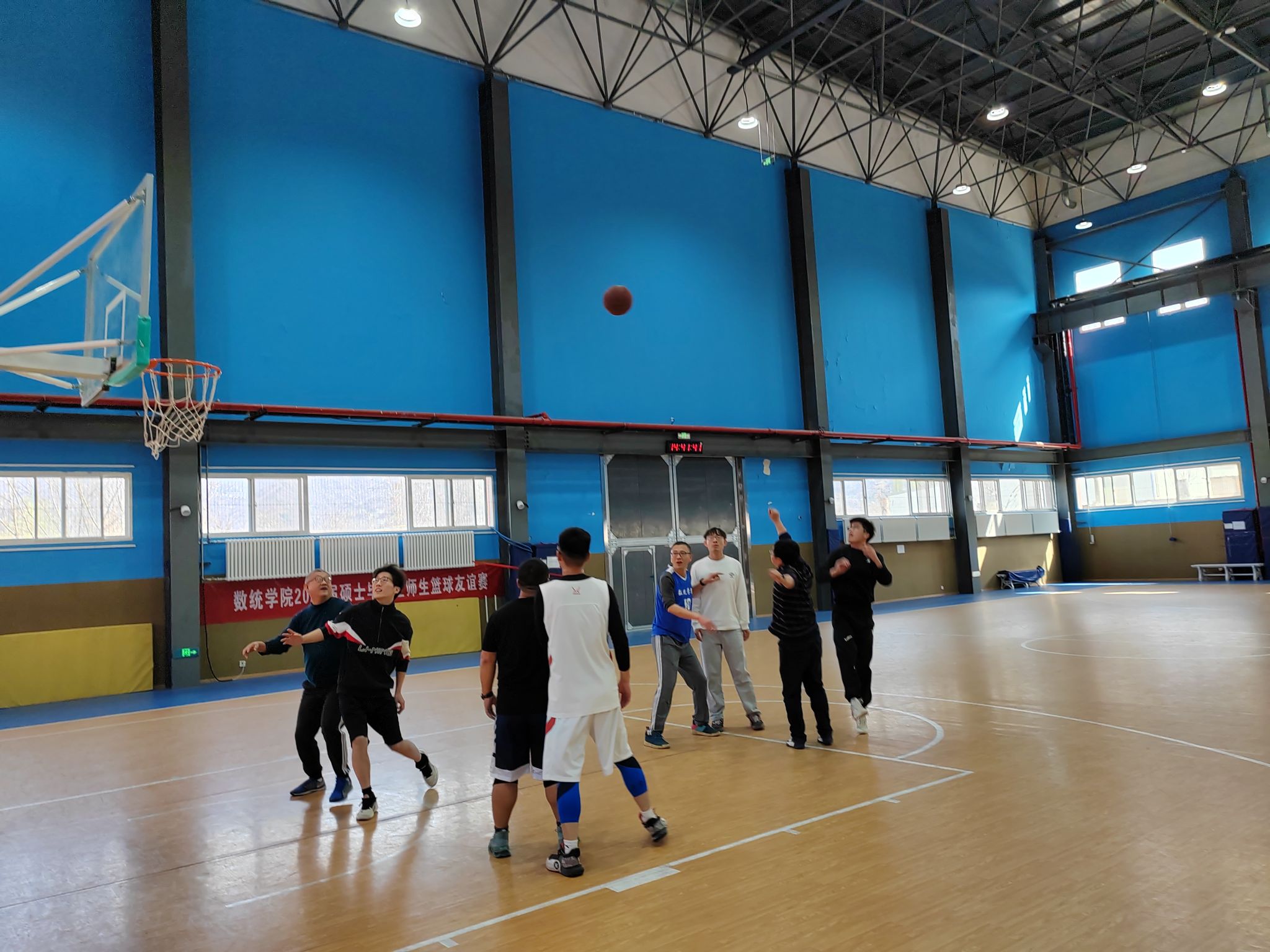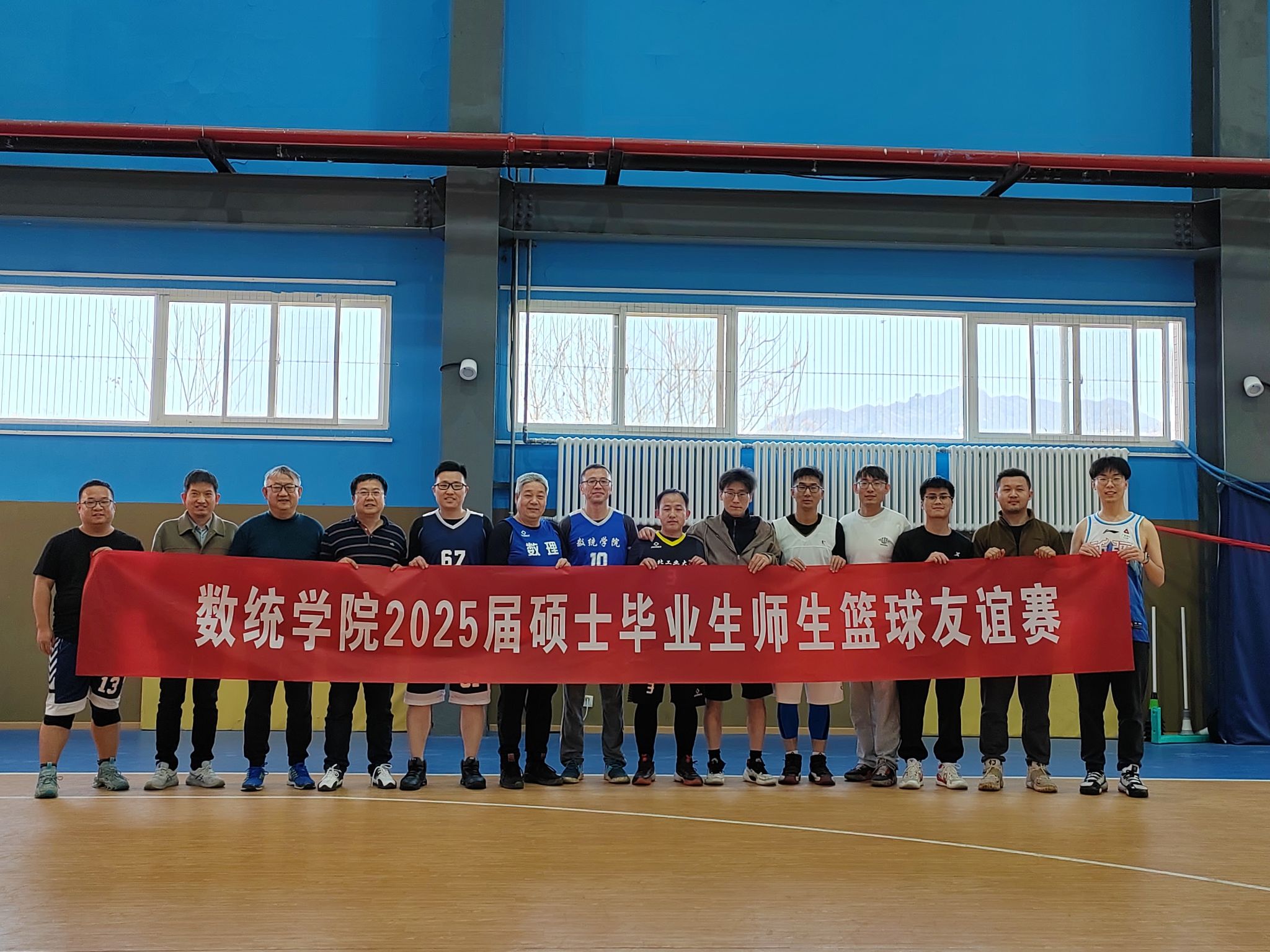 为进一步丰富学院毕业生毕业教育活动内容,增进师生情谊, 3月18日下午两点,金沙娱乐场 工会在长安校区家属区体育馆内成功组织了一场精彩纷呈的2025届硕士毕业师生篮球友谊赛。学院工会主席佘红伟、计算科学系主任赵俊锋、应用概率系主任王亮以及学院多名教师代表、8名硕士毕业生代表共同参加比赛。