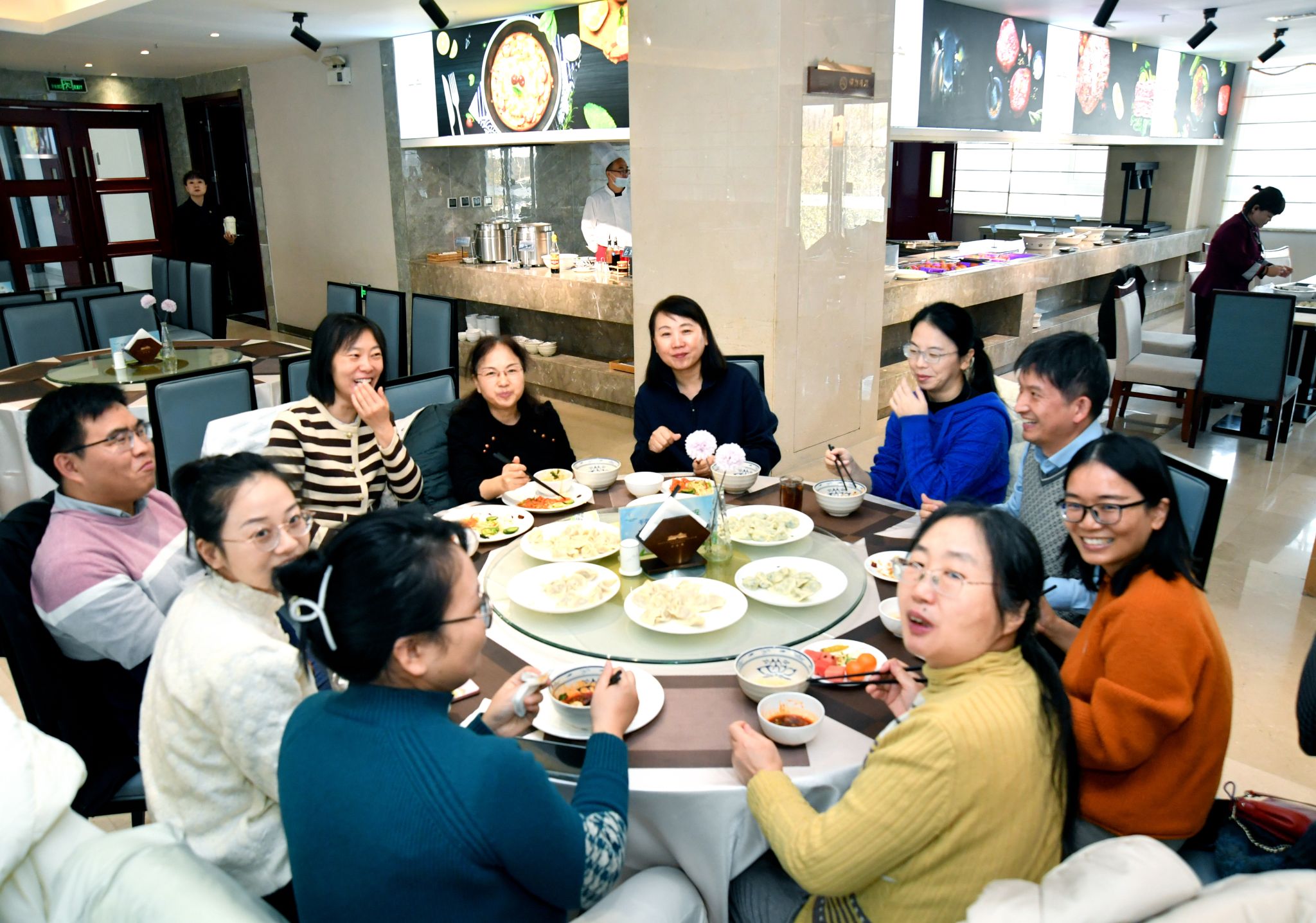 冬至寒意浓,人间温情暖。为进一步传承中华优秀传统文化,增强学院的凝聚力与向心力,12月19日冬至佳节来临之际,金沙娱乐场 工会在长安校区南山苑餐厅精心组织了“情暖冬至·聚力九章”包饺子活动。学院党委书记王莉、副院长郭千桥、工会主席佘红伟以及近30名教职工欢聚一堂,在欢声笑语中共同体验包饺子的乐趣,感受传统节日的独特魅力。