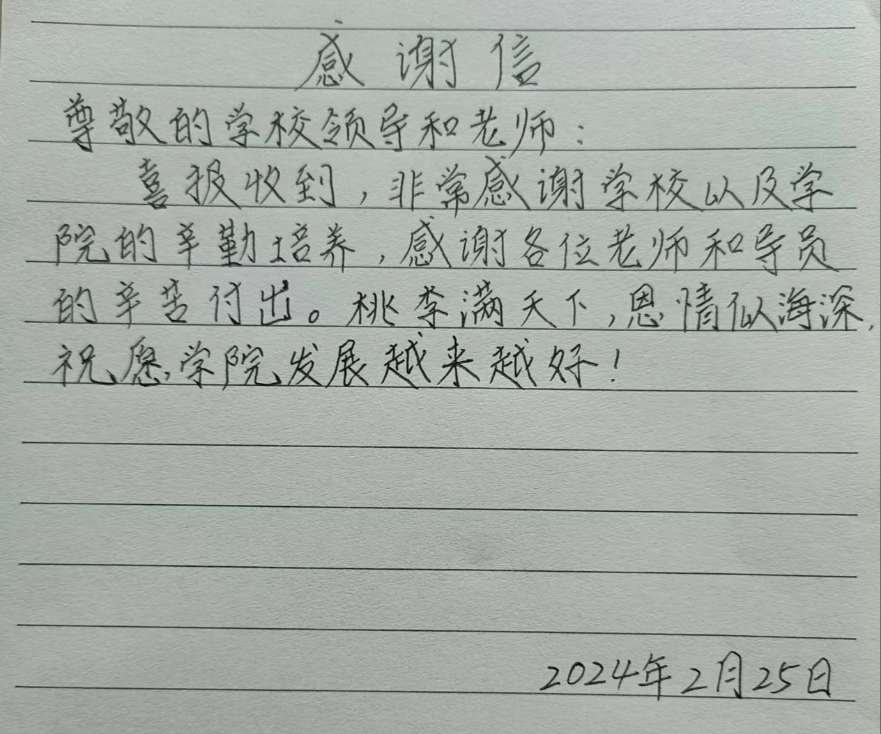 很荣幸收到这份喜报,感谢学院的肯定和鼓励!这不仅是对我过去一年努力的认可,也是激励我继续前进的动力。我会更加努力学习,不辜负大家的期望!