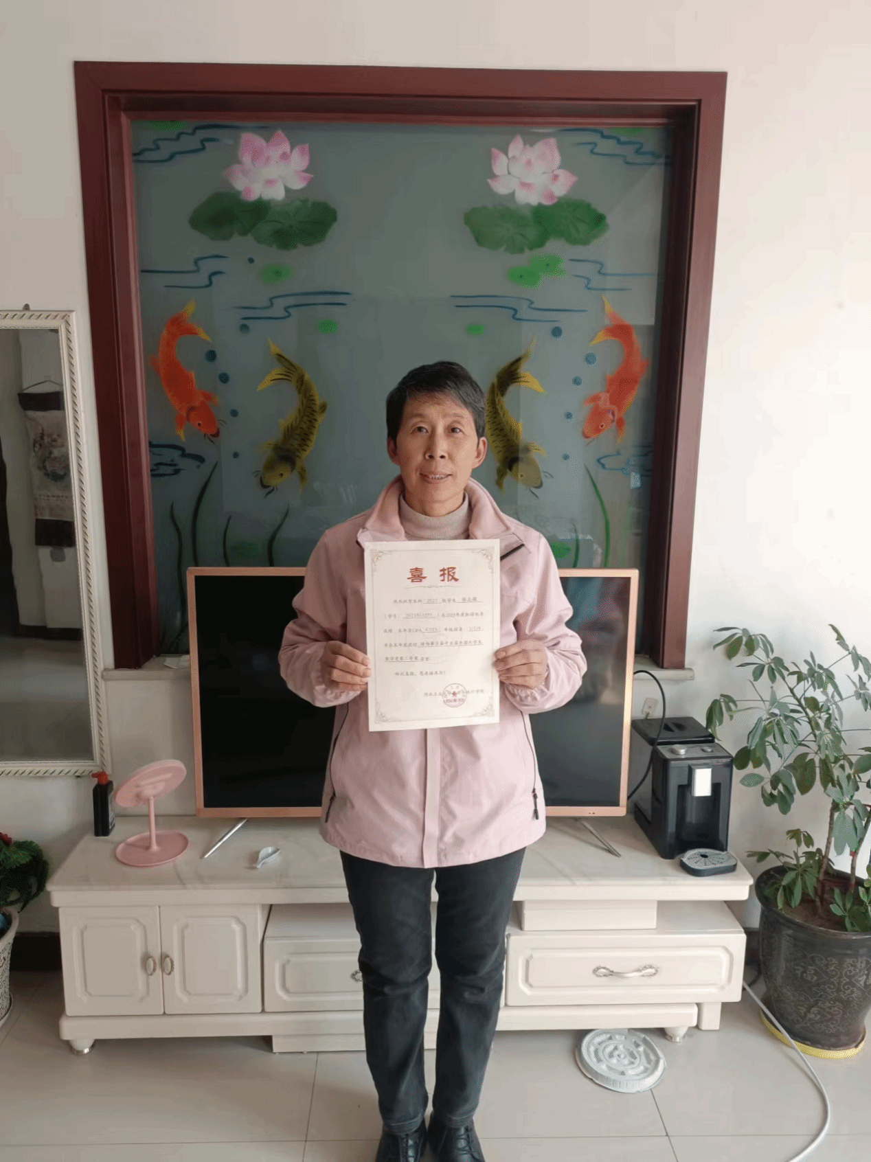 收到学校寄来的喜报,特别高兴。知道孩子不忘初心,在自己喜欢的专业上勤奋努力,取得了可喜的成绩,为孩子感到骄傲!希望在今后的学习中,不骄不躁,继续前行,向着自己的目标不断迈进!