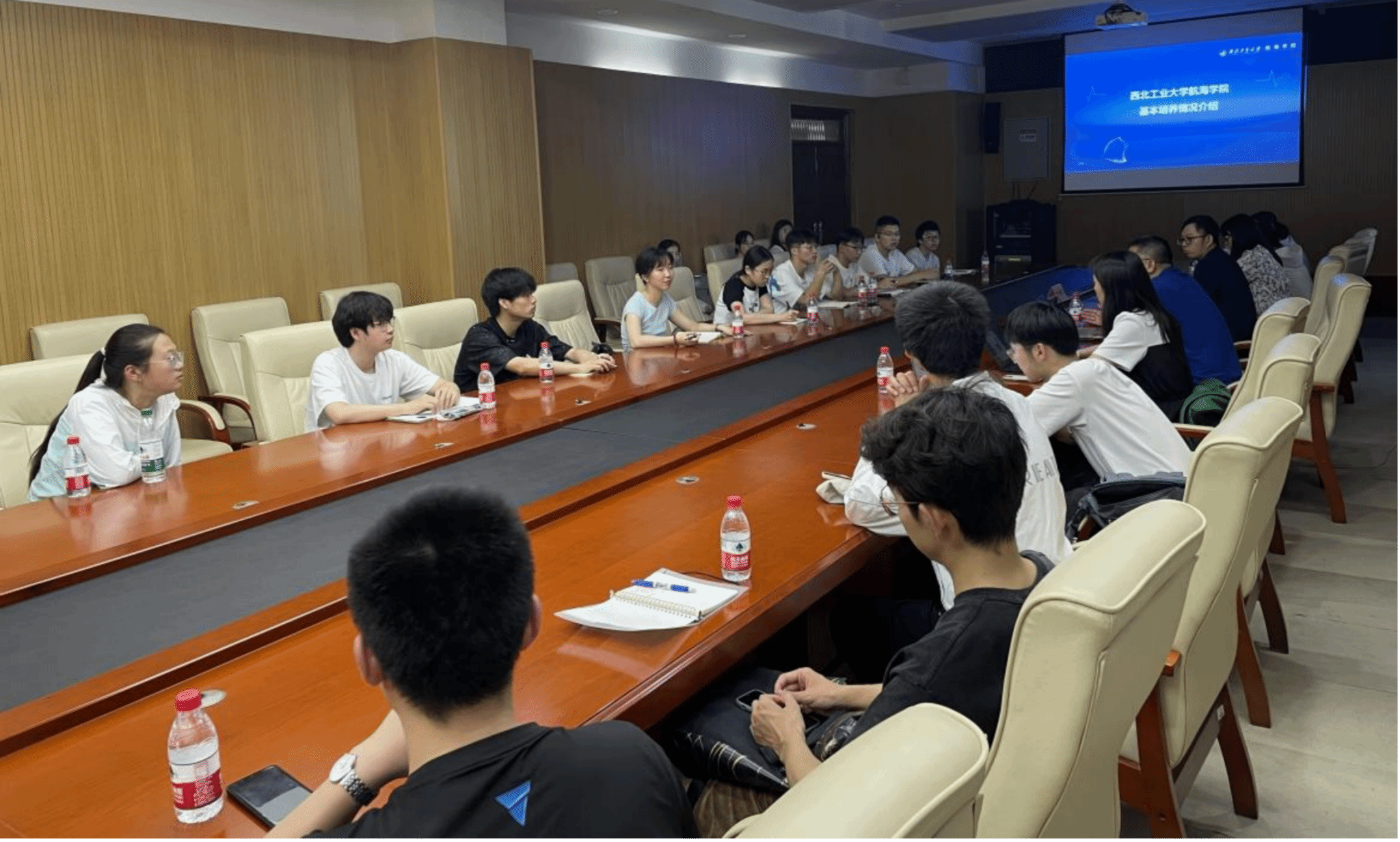 航海学院副研究员叶鹏程带领师生先后参观了高压釜试验系统、水下发射系统试验平台、新型水下滑翔机、仿生柔体潜水器等,在深入浅出的介绍中加深了大家对于航海领域的认知。航海学院党委副书记王银涛对实验室的发展历程、团队构成及研究领域等内容作了简要介绍,与会人员就多学科融合的可行性进行了深入交流。