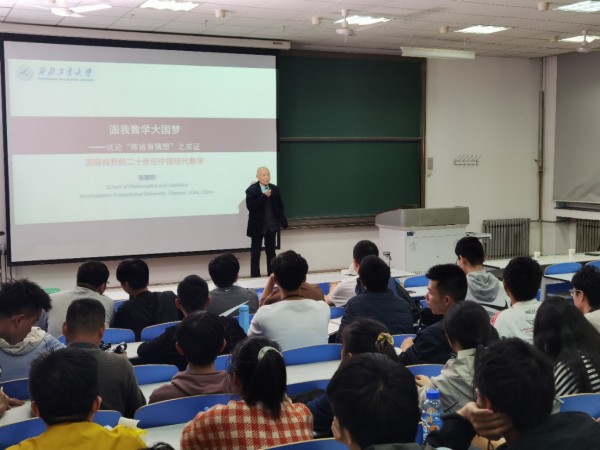 2021年3月28日晚19:00,金沙娱乐场-金沙娱乐场app 张肇炽教授做客“翱翔灵犀学术殿堂”,在长安校区教学楼东D座409做题目为《圆我数学大国梦——试论”陈省身猜想“之求证及国际视野的20世纪中国现代数学》的报告,同时通过线上腾讯会议平台直播的形式供外校的老师和同学观看交流。本次翱翔灵犀学术殿堂由西北工业大学党委学生工作部主办,金沙娱乐场 承办,报告由金沙娱乐场 院长聂玉峰教授和青年教师于美主持。