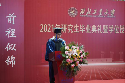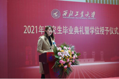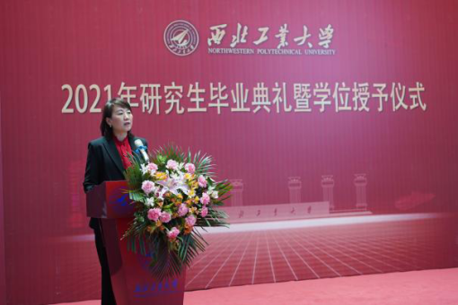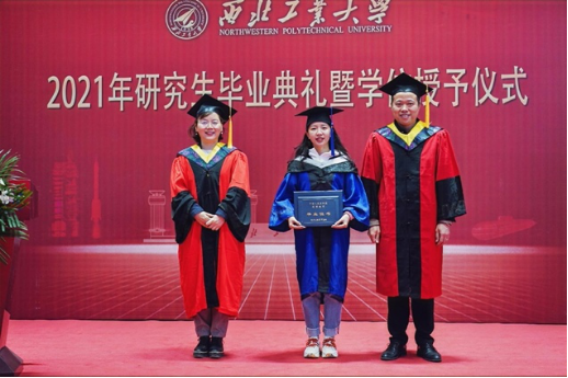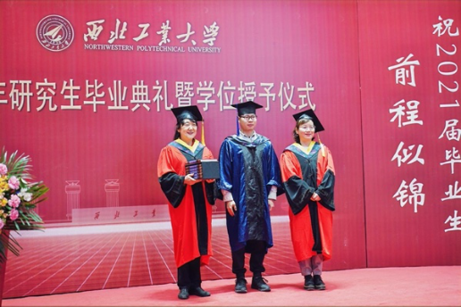 在庄严雄壮的国歌声中,典礼拉开帷幕。副院长徐根玖宣读金沙娱乐场 获得西北工业大学2021年研究生“优秀毕业生”荣誉称号的学生名单。王莉和徐根玖为优秀毕业生代表颁发荣誉证书,并合影留念。