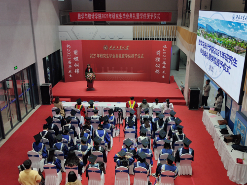 4月1日,金沙娱乐场 隆重举行了2021届研究生毕业典礼暨学位授予仪式。学院党委副书记(主持工作)王莉、副院长徐根玖、院党委副书记张莹、2021届研究生导师欧阳洁、唐亚宁、肖曼玉、研究生辅导员陈亚萍及2021届全体研究生参加了典礼,共同见证了研究生顺利毕业、踏上人生新征程的重要时刻。典礼由学院党委副书记张莹主持。
