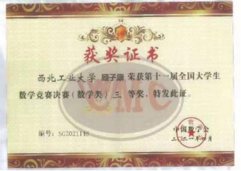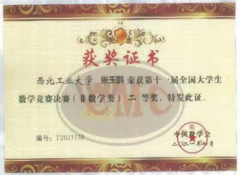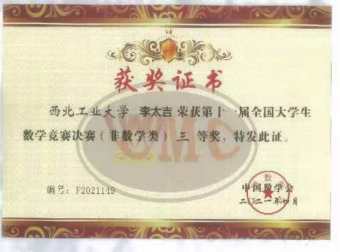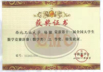 此外,我校金沙娱乐场 马骏同学获得了数学类高年级组二等奖,金沙娱乐场 顾子康同学获得了数学类高年级组三等奖,机电学院张玉鹏同学获得非数学类全国二等奖,软件学院李太吉同学获得非数学类全国三等奖。