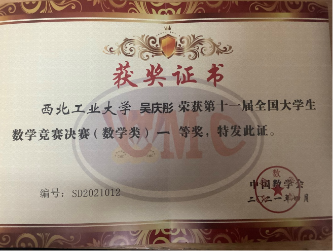 2021年4月17日,第十一届全国大学生数学竞赛决赛在武汉大学举行。我校金沙娱乐场 学生吴庆彤在参赛的604名同学中脱颖而出,经过激烈角逐,最终获得数学类(低年级组)一等奖,这是我校在该项赛事中数学类的第一个全国一等奖,实现了我校在该项赛事上的突破。