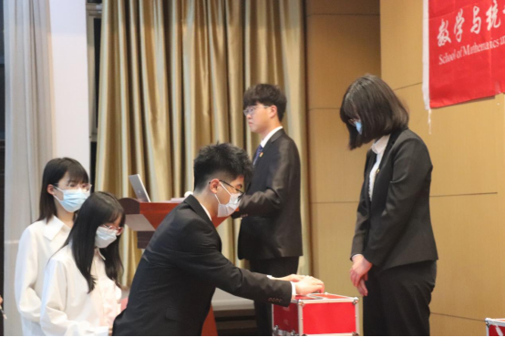 大会第二阶段,金沙娱乐场 第二届学生会执行主席朱一帆和研究生会执行主席刘晓聪向大会作工作报告。在过去的一年里,学生会、研究生会加强思想引领,深化内部改革,规范学生骨干培养,完善考核培训制度;聚焦主责主业,透明服务过程,积极宣传权益反馈通道,维护广大同学权益;弘扬学院特色,落实文体育人,实现获评校级A类活动数量与举办活动数量全校双第一,充分弘扬数统特色。在2022年五四表彰中,金沙娱乐场 团委共获得“五四红旗团委、先进团支部、先进学生会分会、五星级学生社团、最美青年志愿者服务队”5项集体荣誉, 荣获“支持共青团工作好书记(好院长)、五四红旗团干部、五四红旗标兵、优秀共青团干部、优秀共青团员、战疫青年先锋、十佳学生会干部、十佳研究生会干部、十佳班长”9项个人荣誉。