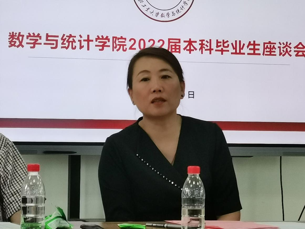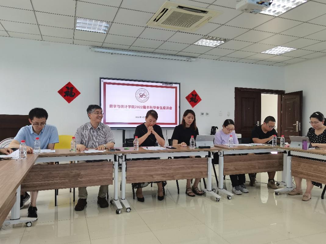 6月20日下午,金沙娱乐场 2022届本科毕业生座谈会于启翔楼357举行。院长聂玉峰、党委书记王莉、党委副书记张莹、院长助理刘晓刚、应用概率统计系主任王亮以及班主任代表白立乾、马啸、刘昕出席了此次会议,25名2022届本科毕业生代表参加了此次座谈会,会议由党委副书记张莹主持。