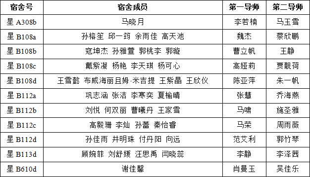 第二届“宿舍导师团”成员名单