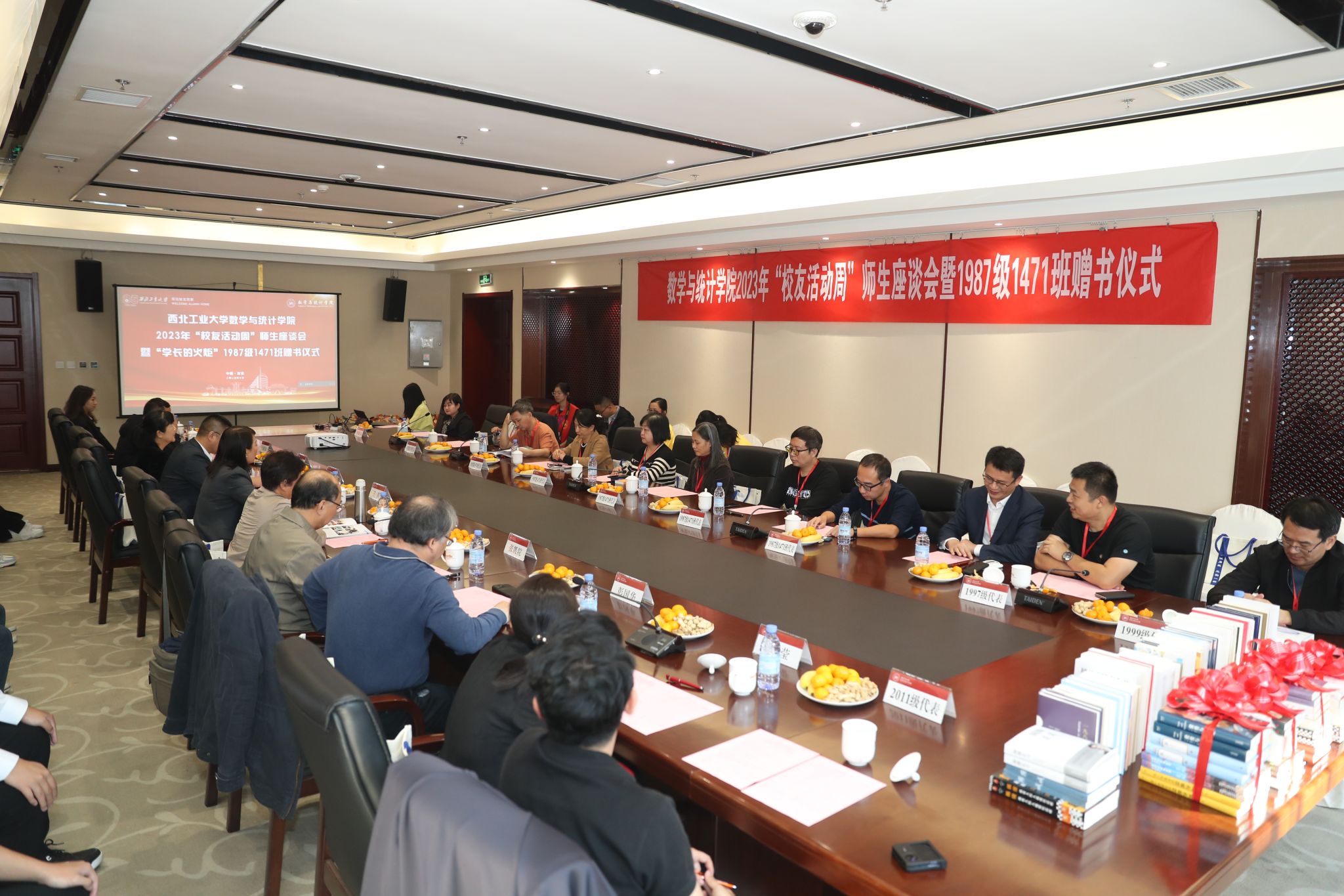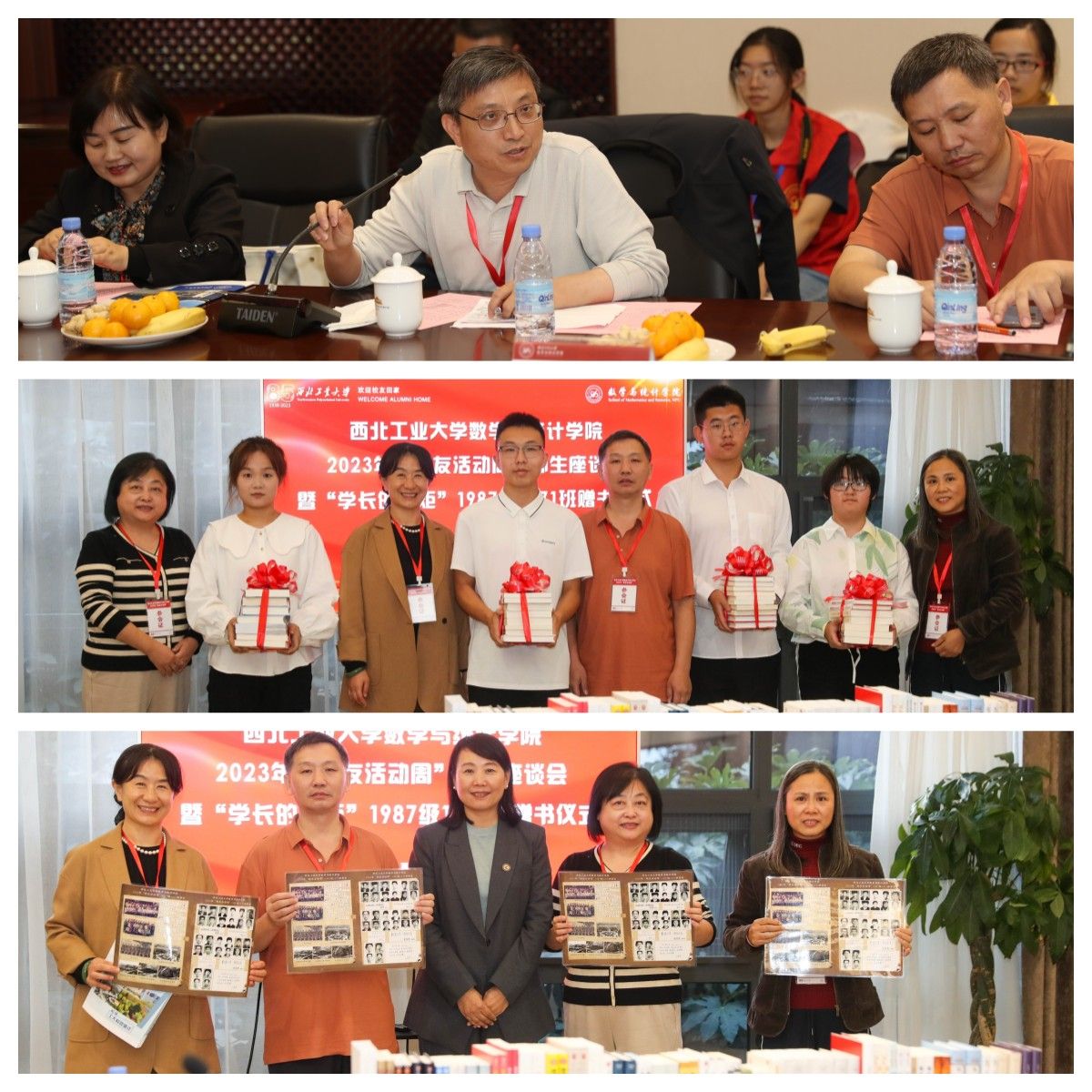 在庆祝西北工业大学建校八十五周年之际,10月14日,金沙娱乐场 2023年“校友活动周”师生座谈会暨“学长的火炬”1987级1471班赠书仪式于长安校区南山苑成功举办。学院党委书记王莉,学校校友总会办公室副主任刘江,学院党委委员王振海,学校原1系党总支副书记张雪霞,学院资深教师代表张凯院、欧阳洁、彭国华,曾在学院担任辅导员工作的台炳龙、王莹与来自祖国各地的学院1987级、1992级、1997级、1999级、2011级、2017级等近30位校友欢聚一堂,畅叙别情,展望未来。