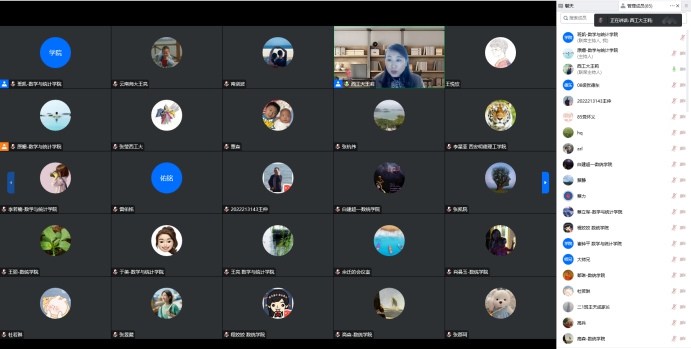在自由交流环节,校友代表学院2002届校友袁元、2003届校友燕斐、2005届校友李俊、2008届校友王曼、2012届校友高兵兵、2015届校友王海、2016届校友梁志艳、2018届校友何精华、2020届校友毛伟男、2021届校友崔钟平等相继发言。他们纷纷表示,在大学学习中,数学的学习锻炼了思维,强化了逻辑,踏入社会后不论面对困难的工作还是繁杂的生活,都能让自己条理清晰地泰然处之;学院的每一位老师都非常和蔼可亲,很幸运学习了数学,感谢老师们的培养;希望学院建立地方校友分会,给各位校友搭建沟通交流的平台;祝愿学弟学妹们学业有成!祝愿学院事业发展蒸蒸日上,不断壮大!等疫情结束后一定要回学校,学院看望各位老师。
