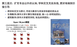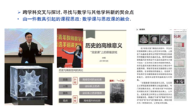 第三层次:扩充专业以外的认知,学科交叉充实自我,更好地做到价值引导。这里杨老师提出老师们自身需要加强理论学习,关心时事政治,提高自身思政修养,参加必要的技能培训,例如牛津EMI、教学分享会、青教赛指导等,同时,多进行跨学科交叉与探讨,寻找数学与其他学科新的契合点。