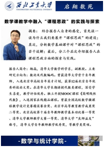 杨铭书记首先向杨晶副教授表示了欢迎,也希望通过此次沙龙活动,可以加强与兄弟院校之间的沟通交流,学习清华大学在教学方面的理念和经验,对学院教学起到进一步的促进作用。都琳副院长对杨老师的传经送宝表示感谢,并对其个人情况进行了简单介绍。随后,杨晶副教授为与会教师们做了“数学课教学中融入课程思政的实践与探索”报告。