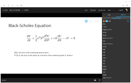 图2商磊老师对布莱克·寿尔斯方程进行讲解