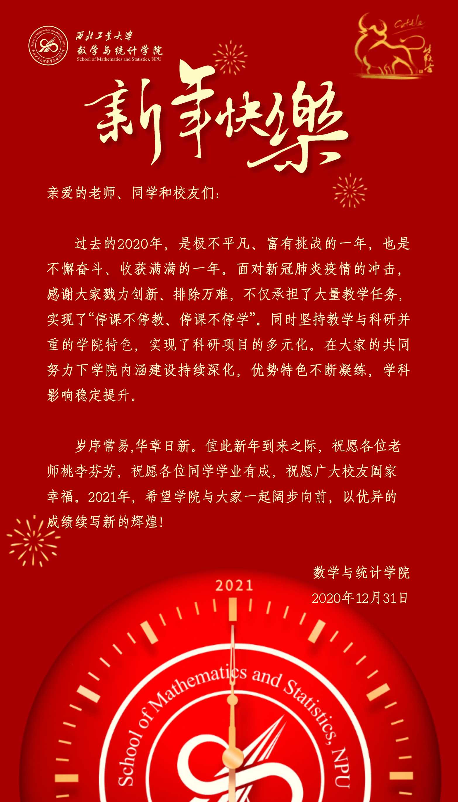 金沙娱乐场 祝各位老师、同学和校友们新年快乐!