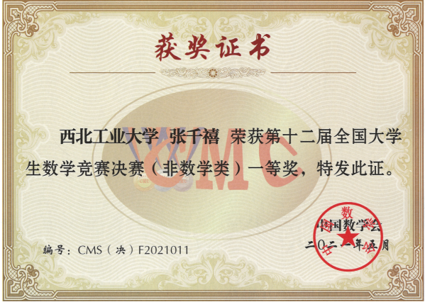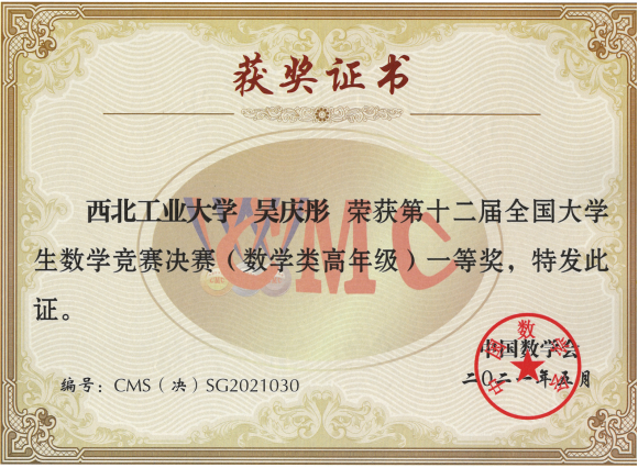 附:西北工业大学第十二届全国大学生数学竞赛决赛完全获奖名单