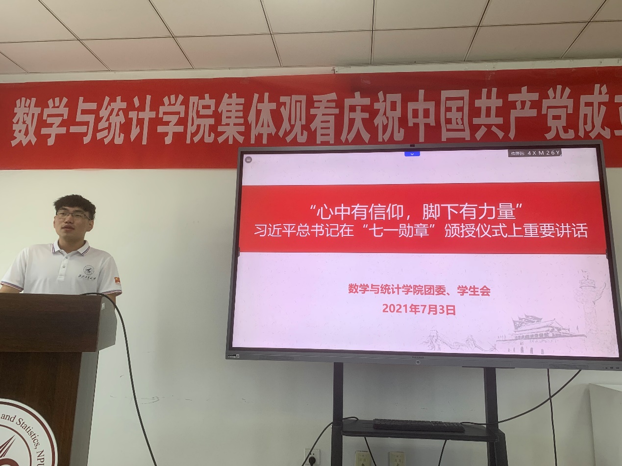 2021年7月3日,金沙娱乐场 团委于启翔楼357集中学习习近平总书记在“七一勋章”颁授仪式上的重要讲话精神,金沙娱乐场 团委副书记俞海领学。