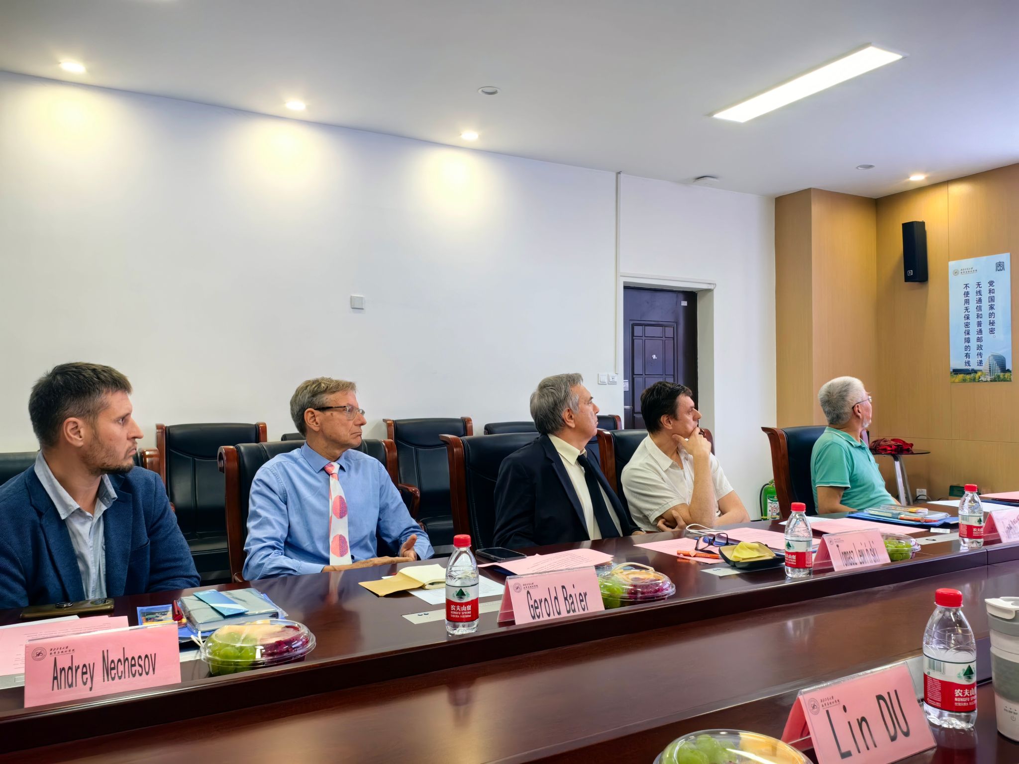 为进一步深化学院国际交流与合作,2024年7月10日下午3点,金沙娱乐场 于理学院201国际会议室组织暑期国际学堂授课专家线下交流会。出席本次会议的外方代表包括波兰华沙理工大学Tomasz Lewiński教授、英国伦敦大学学院Gerold Baier教授、俄罗斯莫斯科国立大学Gorshkov Aleksei副教授、南非夸祖鲁-纳塔尔大学Bau Sheng教授、俄罗斯新西伯利亚国立大学Andrey Nechesov研究员。金沙娱乐场 出席人员包括院长聂玉峰、党委书记王莉、国际化副院长都琳、国际交流与合作办公室主任肖曼玉、国际化秘书李卓榕。会议由肖曼玉主任主持。