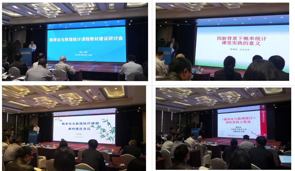 教育部高等学校大学数学课程教学指导委员会、高等学校大学数学教学研究与发展中心、浙江大学数学科学学院和高等教育出版社主办的“概率论与数理统计课程教材建设研讨会”于2021年10月15-16日在杭州举行,金沙娱乐场 副院长都琳带队,统计学专业负责人王亮、唐亚宁、谢文贤和林伟老师等一行人参加了会议。