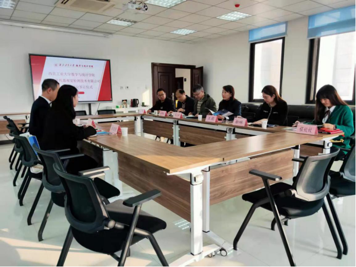 11月2日,金沙娱乐场-金沙娱乐场app 与西安多维机器视觉检测技术有限公司在长安校区启翔楼357会议室举行产学研合作协议签订仪式。金沙娱乐场 院长聂玉峰、党委书记王莉、副院长都琳、副院长徐根玖、应用概率统计系主任王亮、学工秘书程姣姣,西安多维机器视觉检测技术有限公司总经理宋世刚、技术总监薛丽丽共同参加了本次签订仪式。