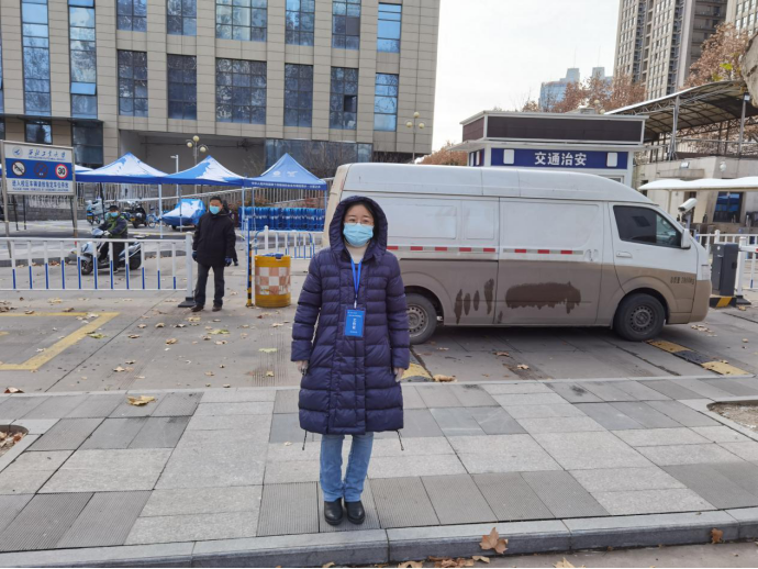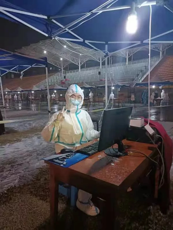 在友谊、长安校区的核酸检测工作现场,身穿“大白”防护服,负责为师生核对身份,检验西安“一码通”的是党委书记王莉、院长助理郭千桥、班凯、青年教师潘璐璐还有学生志愿者王彬、袁昊、王璎斐,几天的分批次工作下来,细心、严谨、寒冷是大家最大的感受,特别是长安校区的风雪天,更是让工作者印象深刻,用心地付出也势必会为全校师生们的健康编制好一面“安全网”。