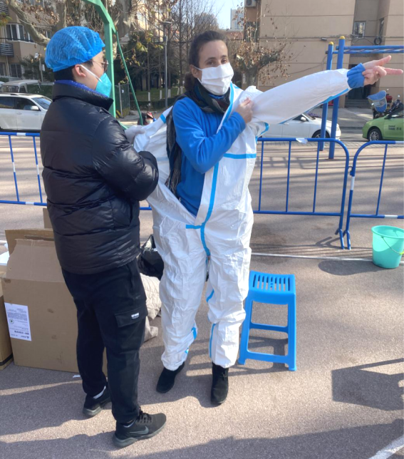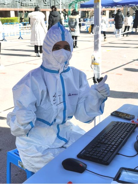 穿上防护服,化身“大白”的吴红迅速投入到了防疫工作中,扫码、核对信息、递试管……吴红很快就掌握了工作流程,使核酸检测进行得快速有效。“你的中国话很地道呀!”不时有检测学生和工作人员发出感叹,其实,这位来自法国的外籍教师,自2012年于贡比涅理工大学获得博士学位至今,便一直在金沙娱乐场 承担《微积分》(英)和《计算方法》(英)等本科教学工作,已经在此扎根九年。这次突如其来的疫情牵动着吴红的心,在看到学院微信群里招募志愿者的通知后,她第一时间决定加入,当谈及面对疫情时的心理状态时,吴红表示她并不害怕,“中国和学校的防疫工作都做得很好,这是我亲身体验到的。”