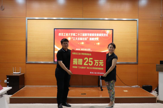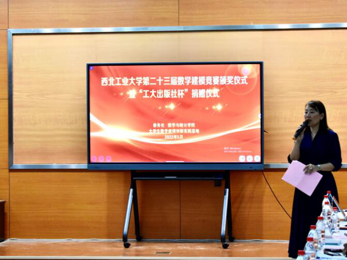 5月31日,长安校区启真楼105会议室师生欢聚一堂,西北工业大学第二十三届数学建模竞赛颁奖仪式暨“工大出版社杯”捐赠仪式在此隆重举行。教务处副处长彭亮,出版社社长高大力、副社长雷军,学校教育基金会副秘书长徐伟侠,金沙娱乐场 党委书记王莉,计算机学院院长於志文,陕西省高等学校教育名师、大学生数学建模创新实践基地负责人孙浩以及相关获奖学院党委副书记、师生代表应邀出席本次颁奖仪式。会议由王莉主持。