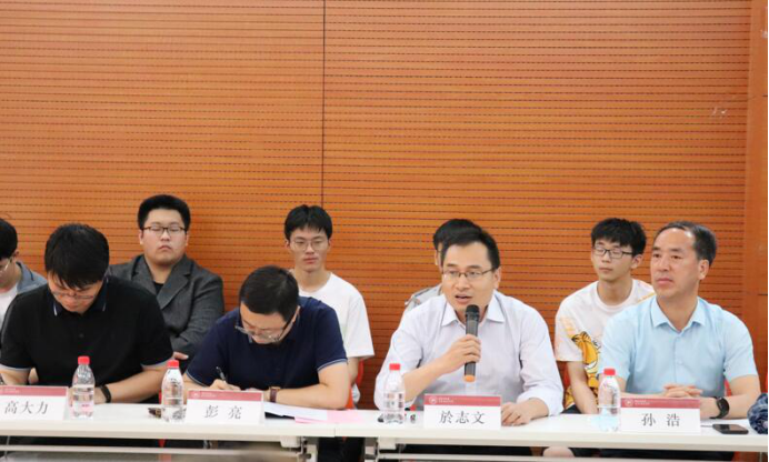 在师生交流环节中,计算机学院院长於志文首先对本学院获得特等奖的三名学生表示祝贺,并以学生代表发言内容结合自身经历,分享了个人在工大本科求学阶段连续两次参加学校数模竞赛的体会和感悟。他在总结中强调,在大学参加竞赛的机会是非常可贵的,希望同学们要好好把握这个重要的人生体验,时刻充满勇气与自信。通过不同的平台,磨练个人技能,突出自身特色,每个阶段都为自己树立目标并为之不断努力。於院长的发言,情深意切,令人深省,引得在场学生频频鼓掌。