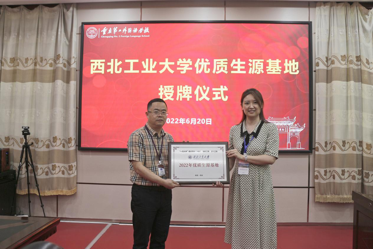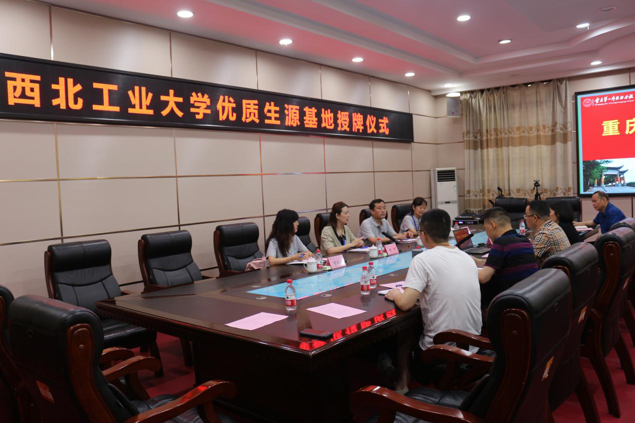 20日上午,金沙娱乐场 副院长都琳首先向与会人员介绍了西北工业大学的办学理念和专业特色,同时播放学校宣传片,并就宣传片相关内容进行了详细介绍。其次由金沙娱乐场 副教授王振海进行重庆招生的整体安排及招生情况介绍,重庆第二外国语学校党委副书记廖庆就学校具体情况与发展实际也进行了详细介绍。最后双方签订优质生源协议、赠送纪念礼物并进行优质生源基地授牌仪式。