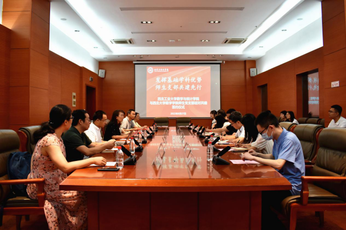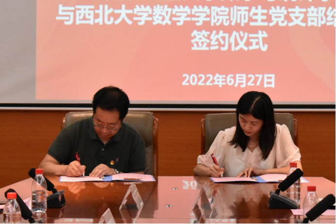 双方负责人分别从学院概况、学院党建工作、基础课程教学、学生管理等方面介绍各自学院的发展现状和未来规划。双方师生党员共同学习研讨了习近平总书记关于基础学科人才培养的重要讲话精神,并结合讲话精神介绍各自学院在人才培养方面的典型做法,参会人员畅谈学习体会,交流基础学科的发展。会议中,金沙娱乐场-金沙娱乐场app 数学科学系党支部、2020级硕士生第三党支部与西北大学数学学院基础数学系党支部、2020级研究生党支部共同签订了师生党支部结对共建协议。