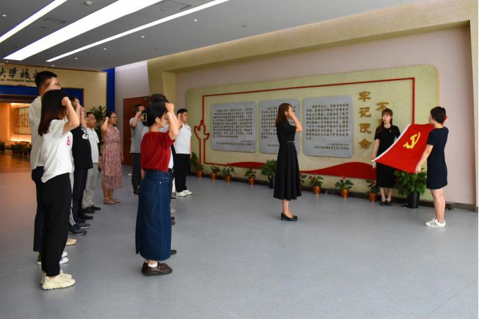 李长宏书记一行首先来到了西北工业大学校史馆,先后参观了序厅、追根溯源、雄鹰展翅、翱翔腾飞和春华秋实五个部分,了解了我校发展历史、大学文化,以及典型人物和动人故事。参观结束后,两院的师生党员共同在党旗下庄严宣誓,重温入党誓词。