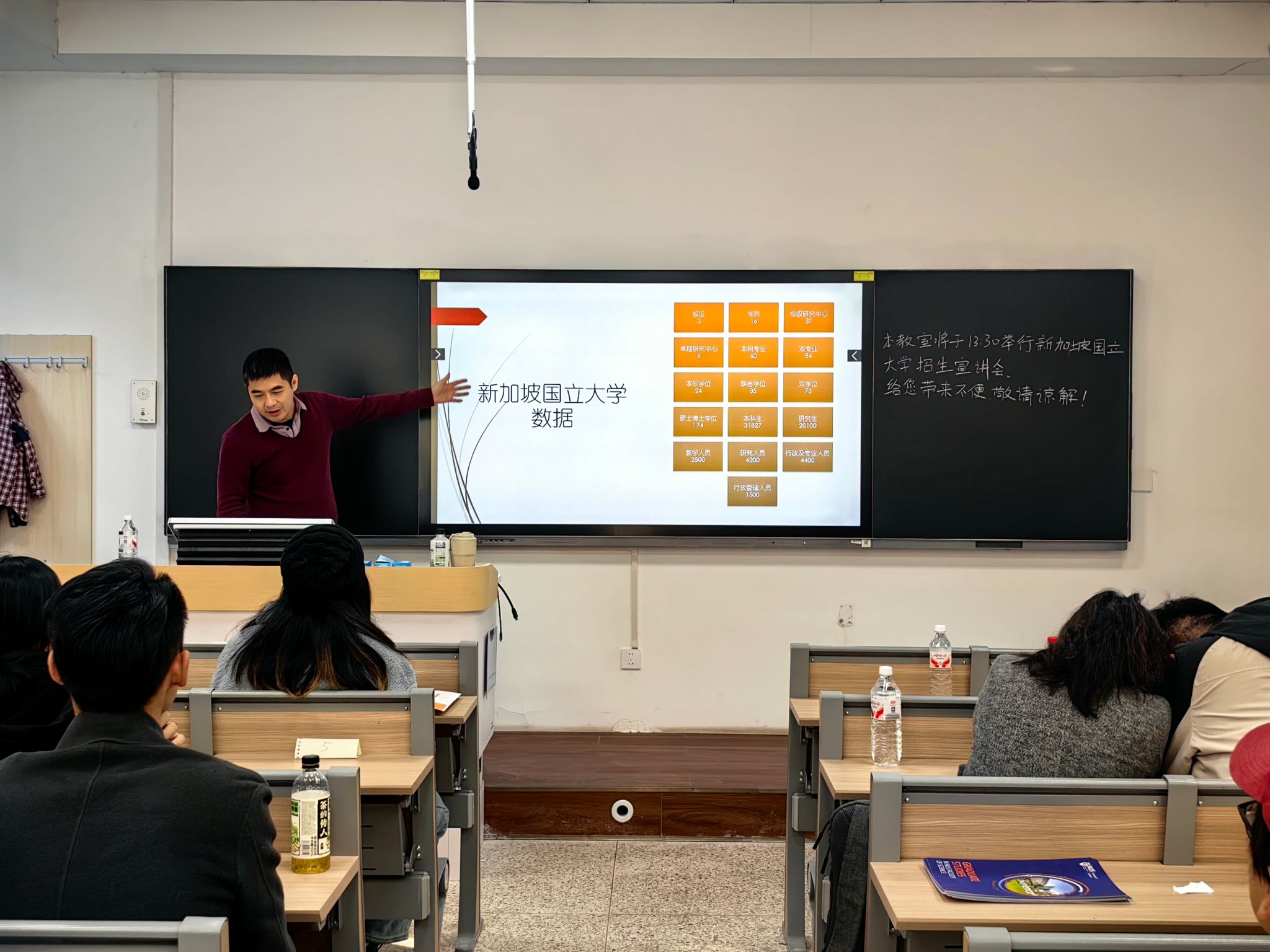 为搭建优质国际化升学平台,助力学子对接世界顶尖教育资源,12 月 4 日 下午,金沙娱乐场 于长安校区教西成功举办 “九章越洋,学贯中外”世界名校宣讲会。新加坡国立大学(2026QS第8)、英国布里斯托大学(2026QS第51)两大名校代表受邀分享本硕博项目。学院党委副书记张莹教授、国际交流与合作办公室主任肖曼玉教授、外事秘书李卓榕,新加坡国立大学理学院助理院长王飞教授、中方招生负责人 Joanna 老师,英国布里斯托大学 3+1 本硕双学位项目中方负责人王秋红老师及20余位本校学生共同出席活动。宣讲会由李卓榕老师主持。
