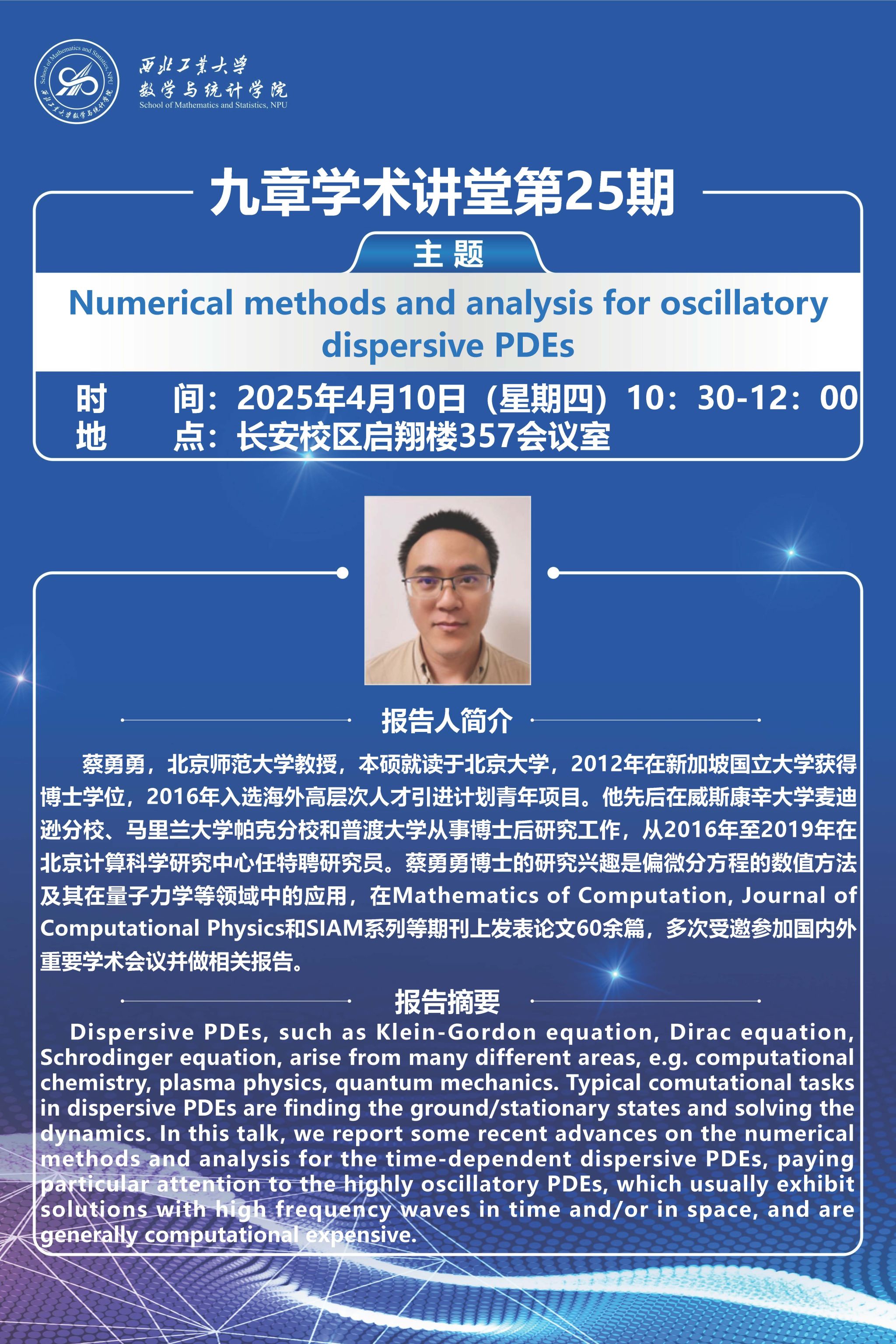 【九章学术讲堂第25期】Numerical methods and analysis for oscillatory dispersive PDEs