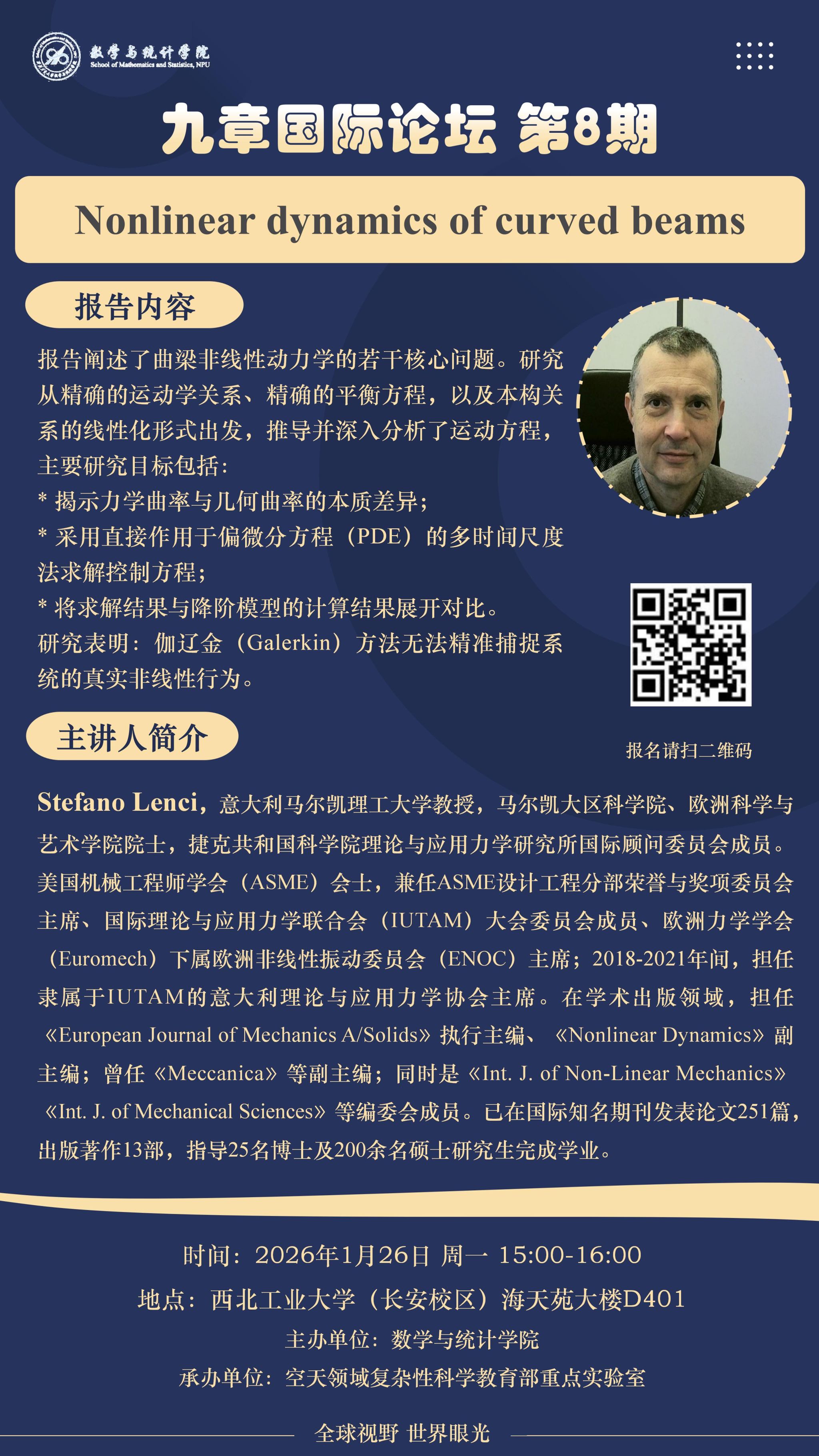 【九章国际论坛第8期】Nonlinear dynamics of curved beams