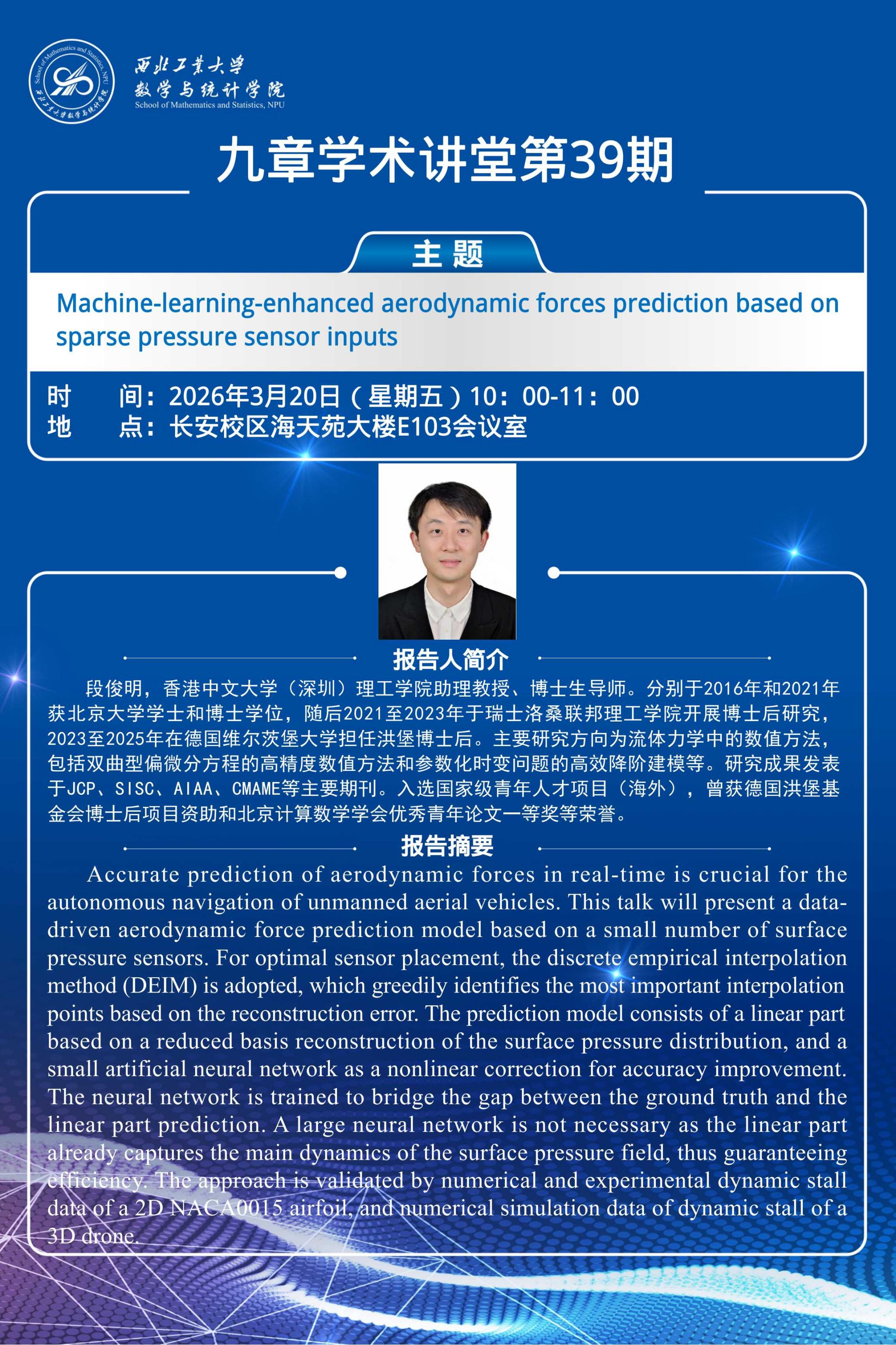 【九章学术讲堂39期】Machine-learning-enhanced aerodynamic forces prediction based on sparse pressure sensor inputs
